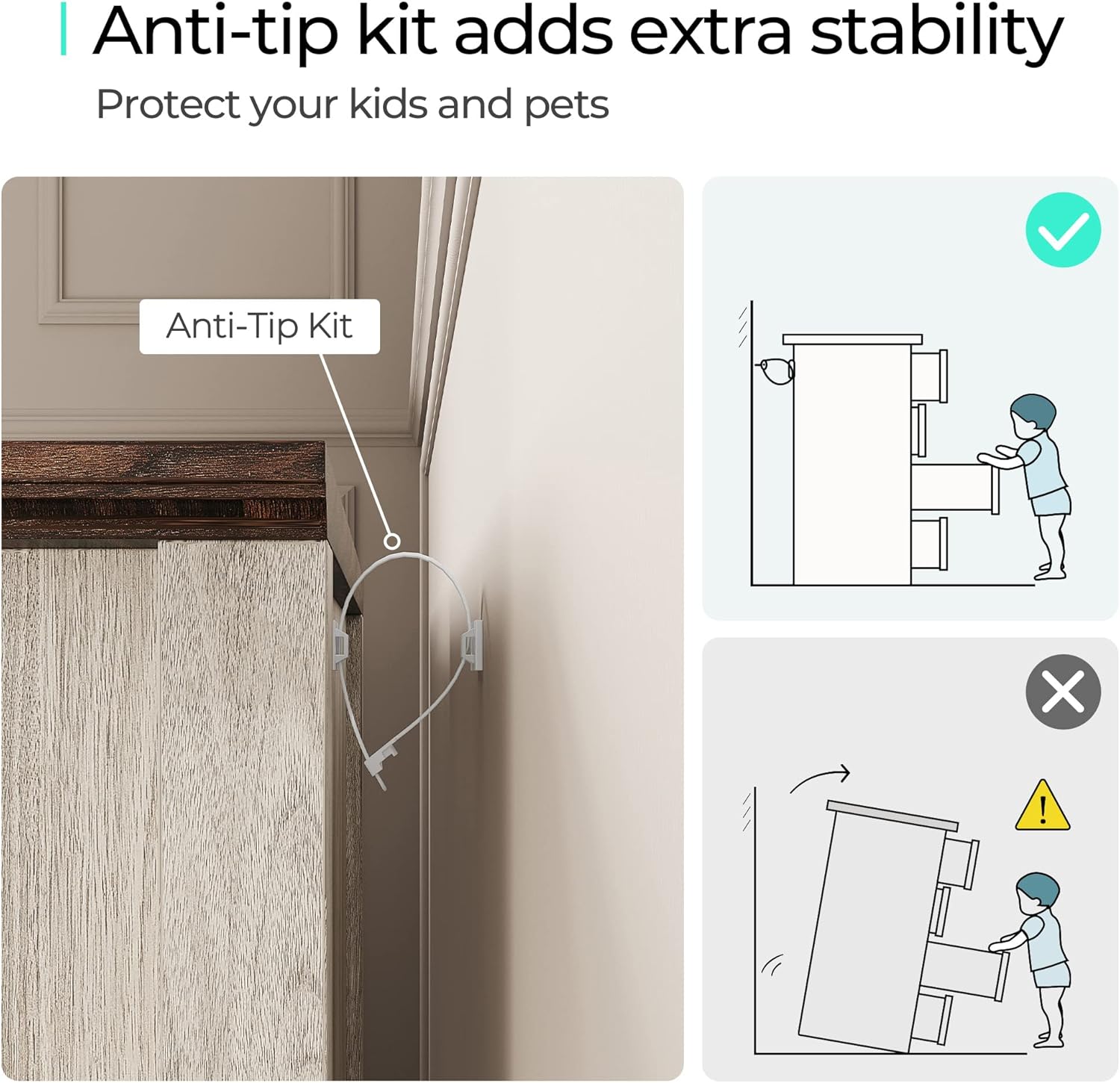 - [SAFETY FIRST] - Wall anchor kit provided to prevent tip-over incidents. Smooth metal runners on each drawer with safety stops prevent drawers from puling out. Hardware and easy-to-follow assembly instructions included. Two people recommended.