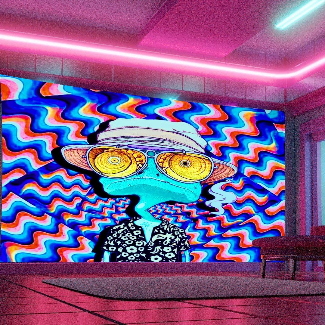 ADDWel Blacklight Frog Tapestry, Hippie Alien Tapestry Glow In The Dark, UV Reactive Black Light Upright Posters Wall Hanging for Bedroom Dorm Living Room Backdrop Decor