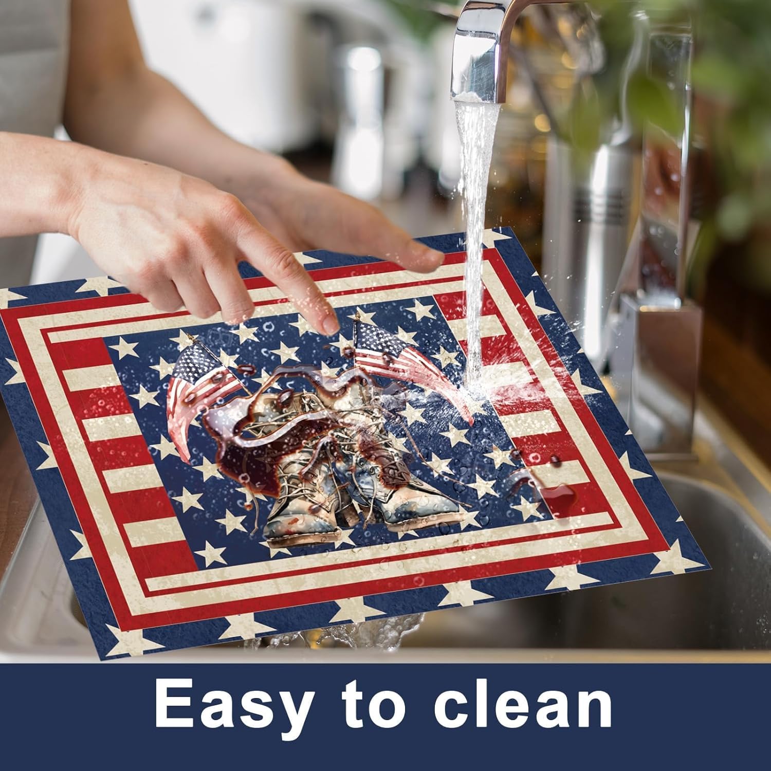 - Easy cleaning: Vintage fourth of july placemats set of 6 decorations sets are designed for easy cleaning to save you from the hassle of washing the patriotic placemat covered with grease. You only need to wipe them easily with a damp cloth, making you spend more time enjoying a happy time with your family and friends.