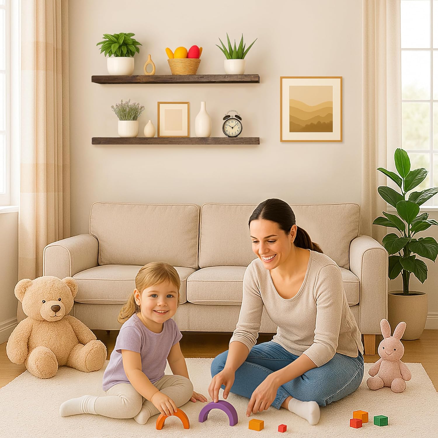 - EASY TO INSTALL: These floating shelves come with stainless steel galvanized invisible brackets, toggle bolts for drywall, and simple instructions to help you install them. These wall shelves are easy to assemble, requiring only two boards and the necessary screws and hardware. We also provide detailed instructions for quick and easy assembly!