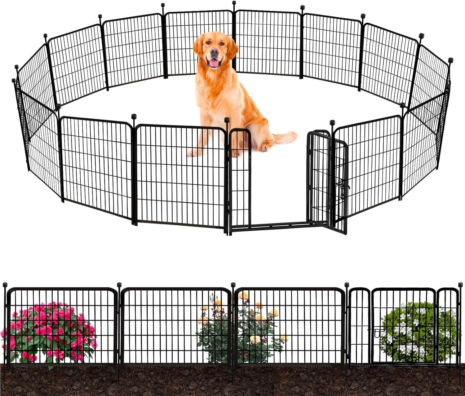 - Easy to Install:The Dog Fence with Gate Can be Assembled in Just A Few Minutes, No Tools Required. It Can also be Disassembled in Minutes When Not Needed. And You Can Assemble It into Many Shapes as You Need, Flexible Arrangement of Garden Fence or Pet Kingdom