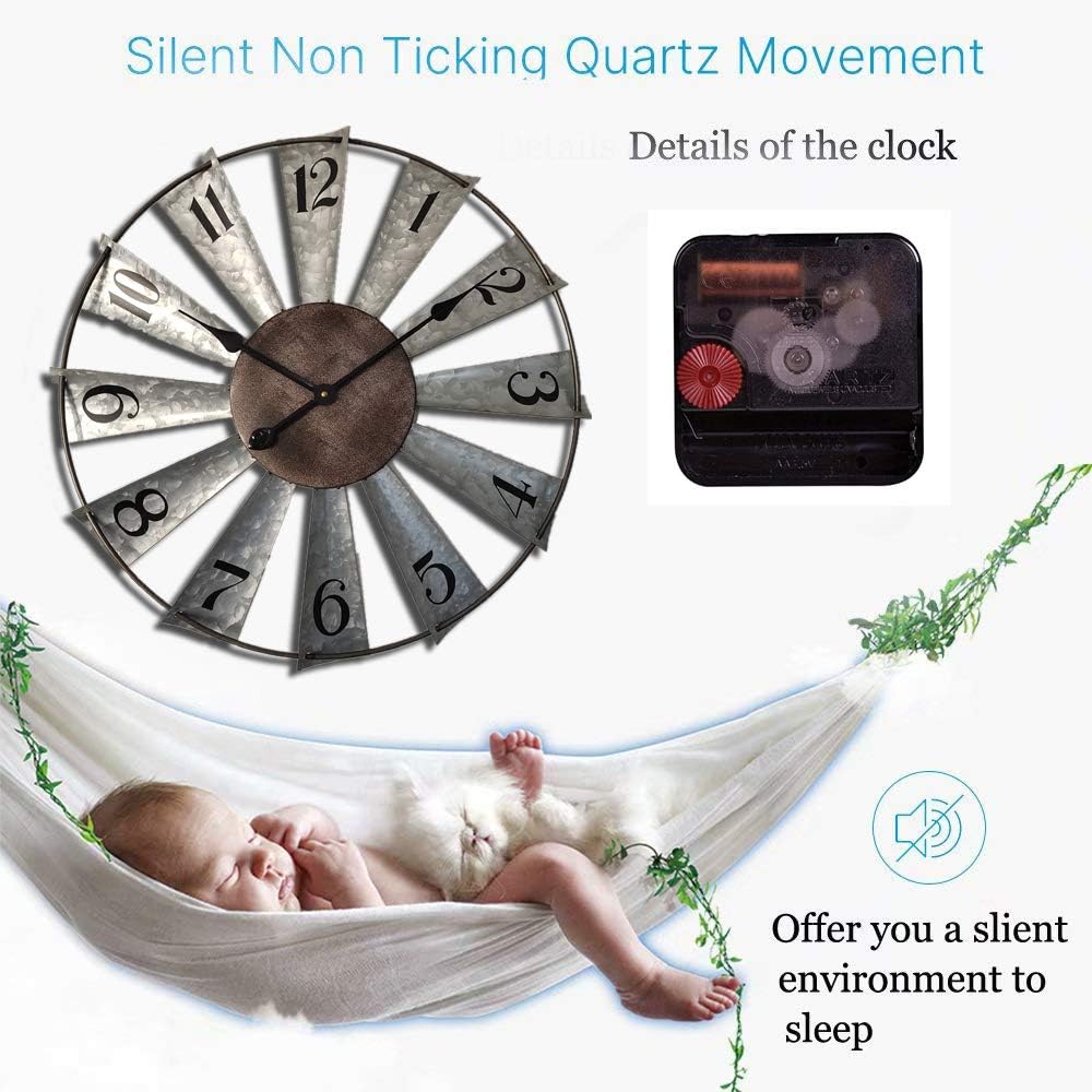 Mrocioa 30inch Windmill Distressed Metal Wall Clocks Rustic Large Decorative Clock Oversized Farmhouse Decor,Non Ticking,Battery Operated