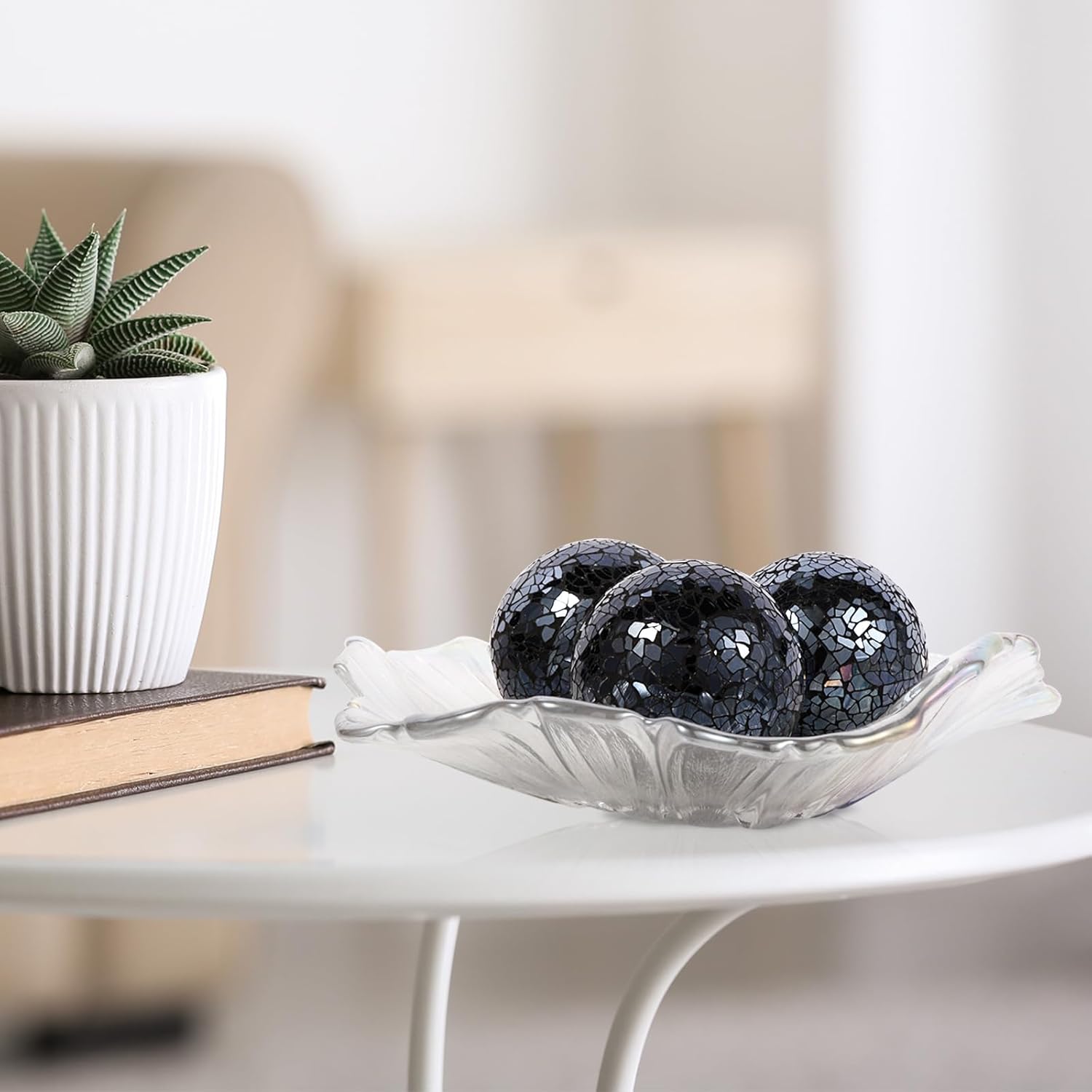 6pc Decorative Ball Set - 6cm/2.4inch Mosaic Glass Orbs for Centerpieces, Table Decor, Wedding Party (Black)