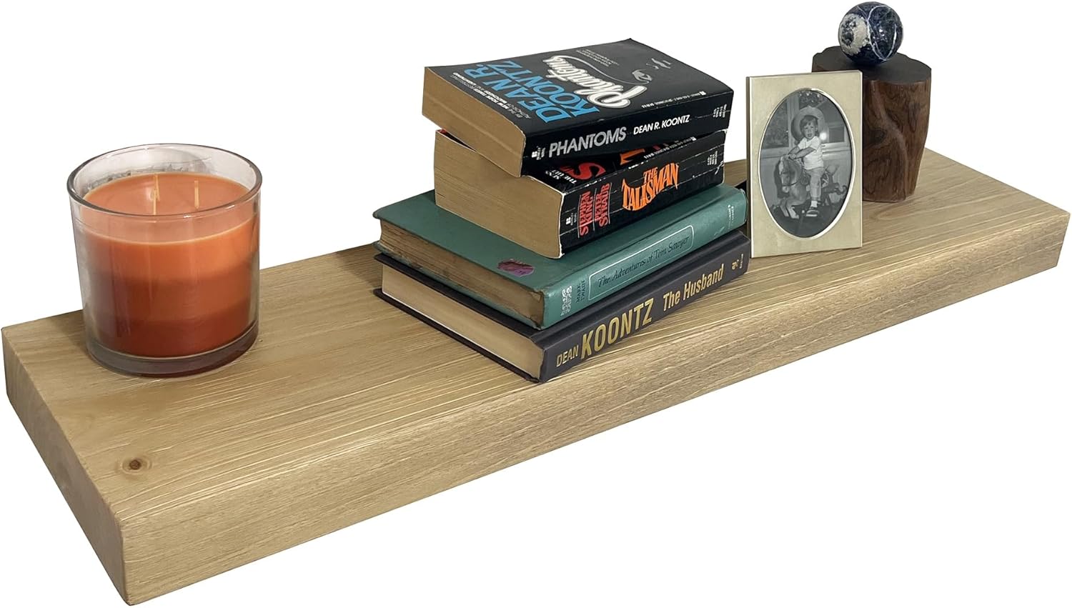 - Elevate Your Space with Rustic Charm: Transform your living room or any space with our large floating shelves for wall. These 24 inch floating shelf beauties, crafted from natural wood, add a touch of rustic warmth and provide ample display space for your cherished items. These are a great depth for photos, and organizing small areas. NOTE: You need to be able to hit one wood stud toward the center of where you want to hang the shelf.