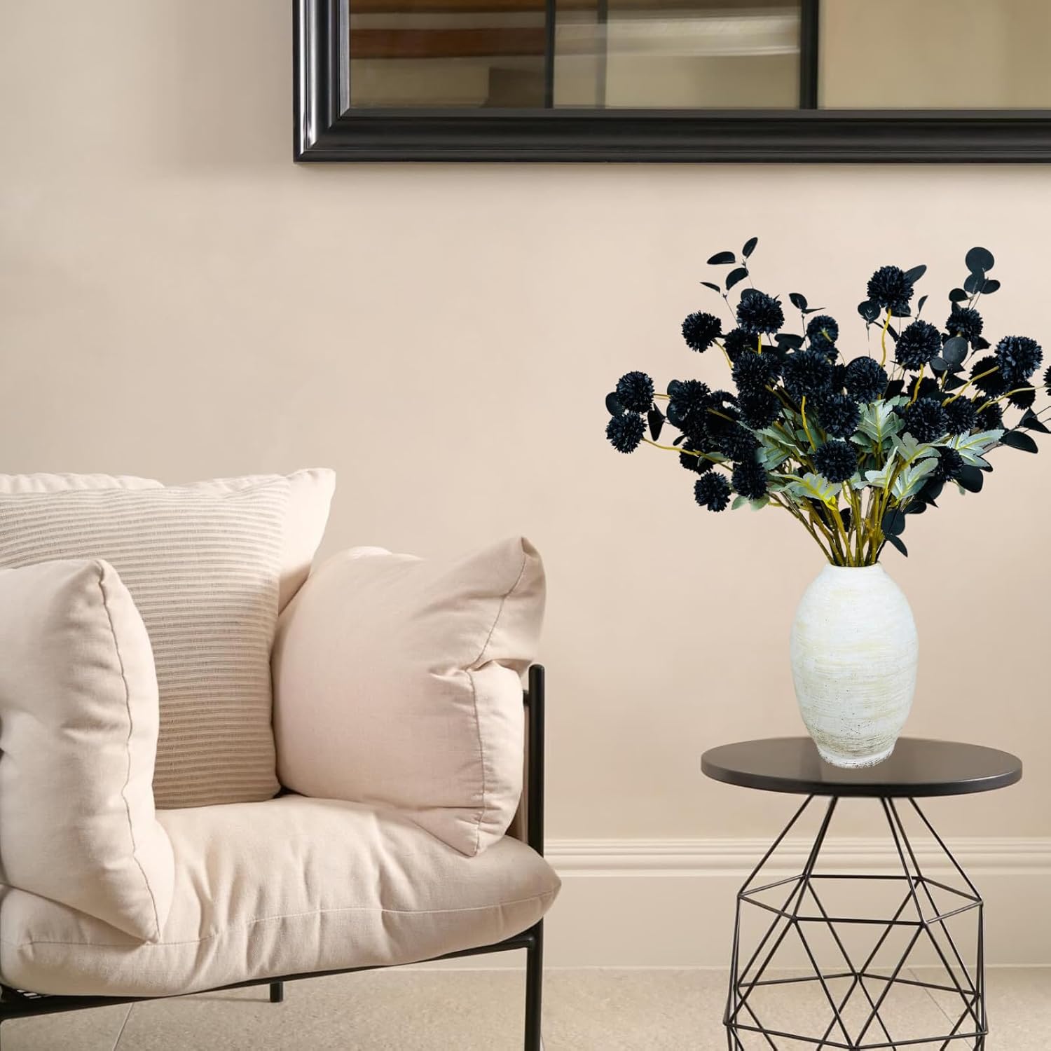 RyddeligHome Black Artificial Flowers for Centerpieces Bulk 10 Long Stems /50 Small Faux Silk Mum Balls + Black Eucalyptus Stems 2 Branches, Fall Boho Halloween Home Decor Indoor, Gothic Flowers
