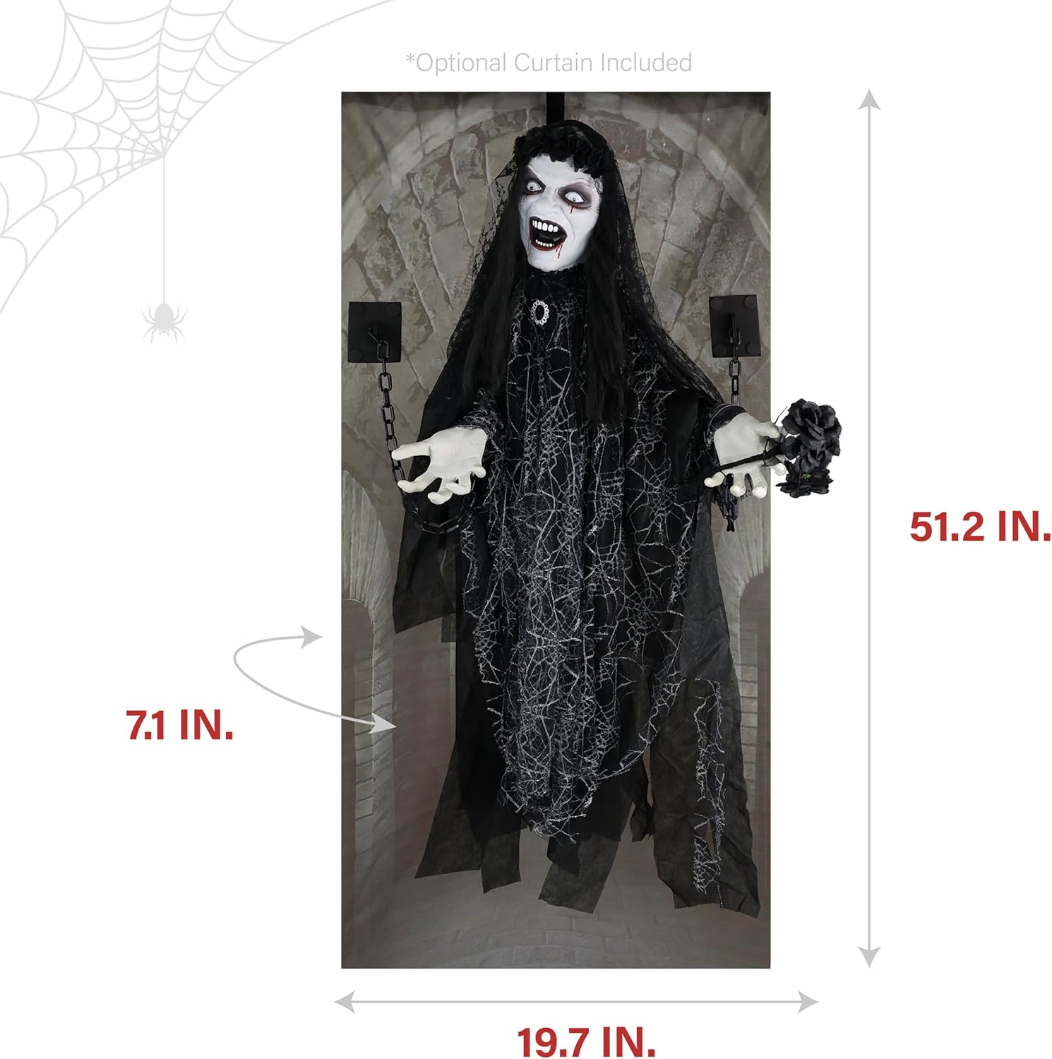 Haunted Hill Farm Animatronic Scary Demon Widow Door Greeter with Touch Activated Lights and Sound, Battery-Operated Indoor or Covered Outdoor Halloween Decoration