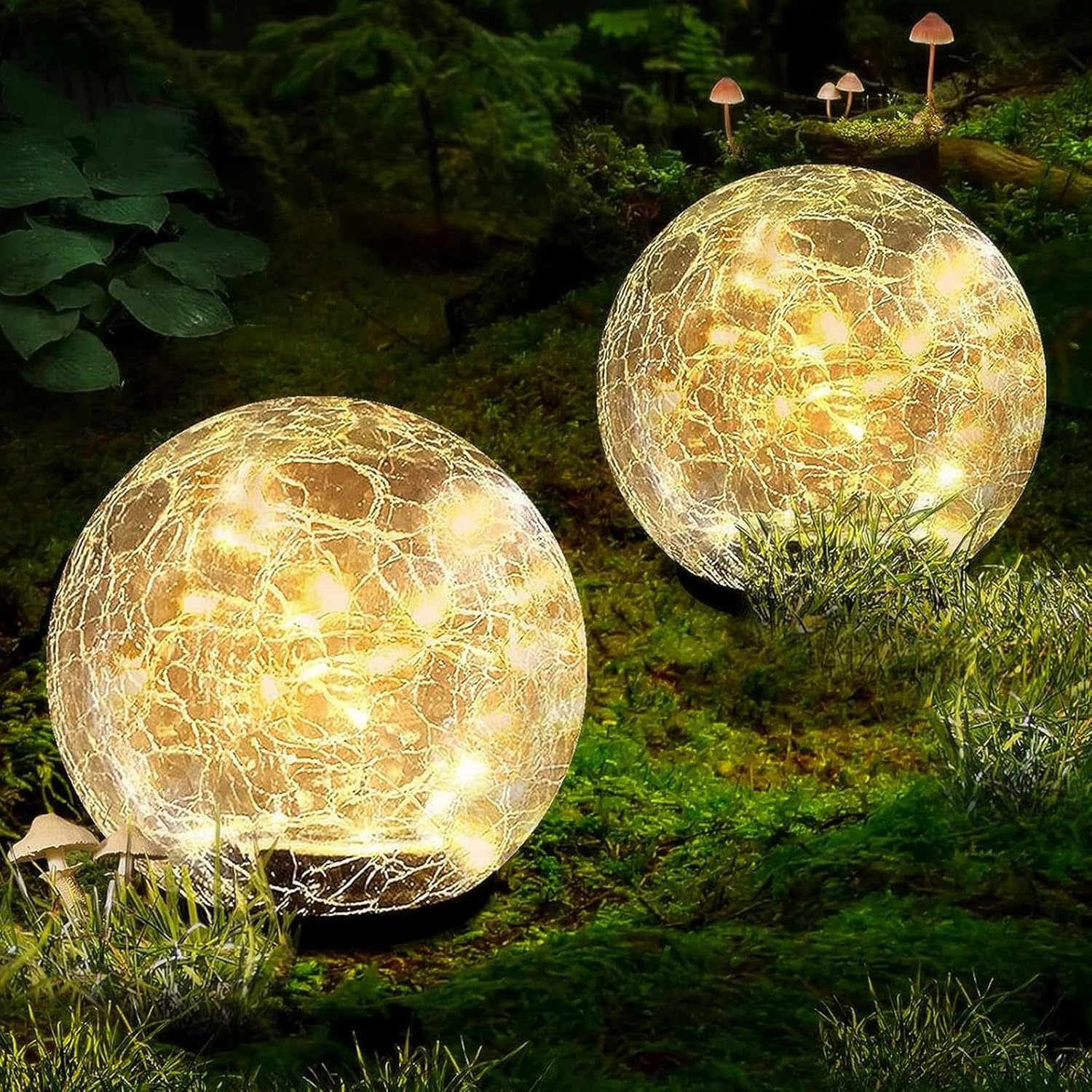 Garden Solar Ball Lights Outdoor Waterproof, 30 LED Cracked Glass Globe Solar Power Ground Lights for Path Yard Patio Lawn, Christmas Decoration Landscape Warm White(2 Pack 3.9'')