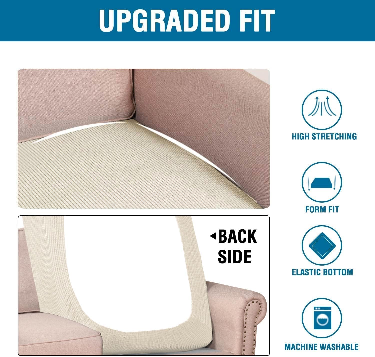 - NON SLIP: Effortless for installation (guide photos on selling page), sewn with thick elastic loops to cover the bottom edges. It is easy to install and take off, making your home more harmony, high recommended for both leather and cloth furniture