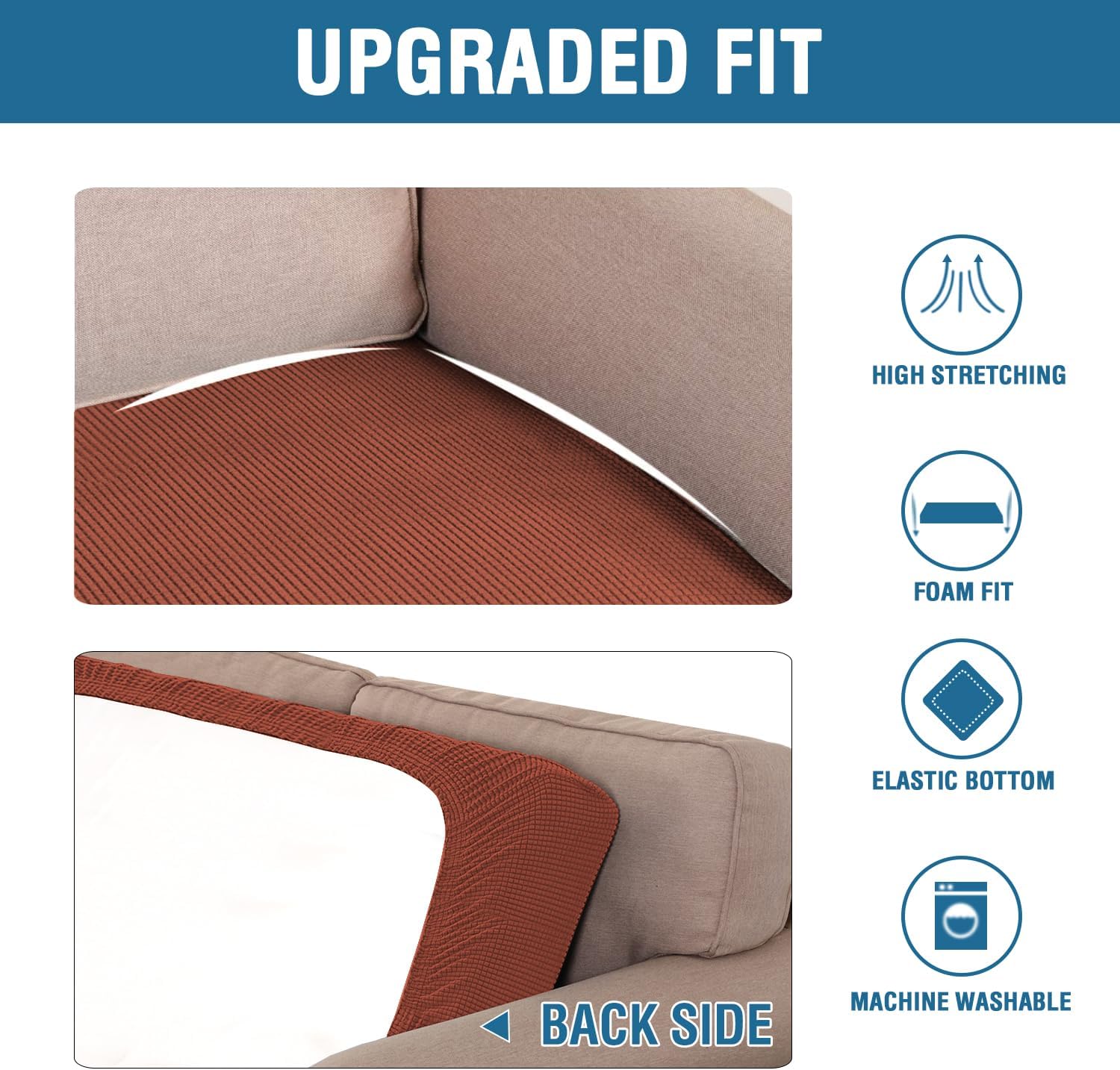 H.VERSAILTEX Super Stretch Individual Seat Cushion Covers Sofa Covers Couch Cushion Covers Slipcover Sets Thick Jacquard Textured Twill Fabric (1 Piece Loveseat Cushion Cover, Rust)