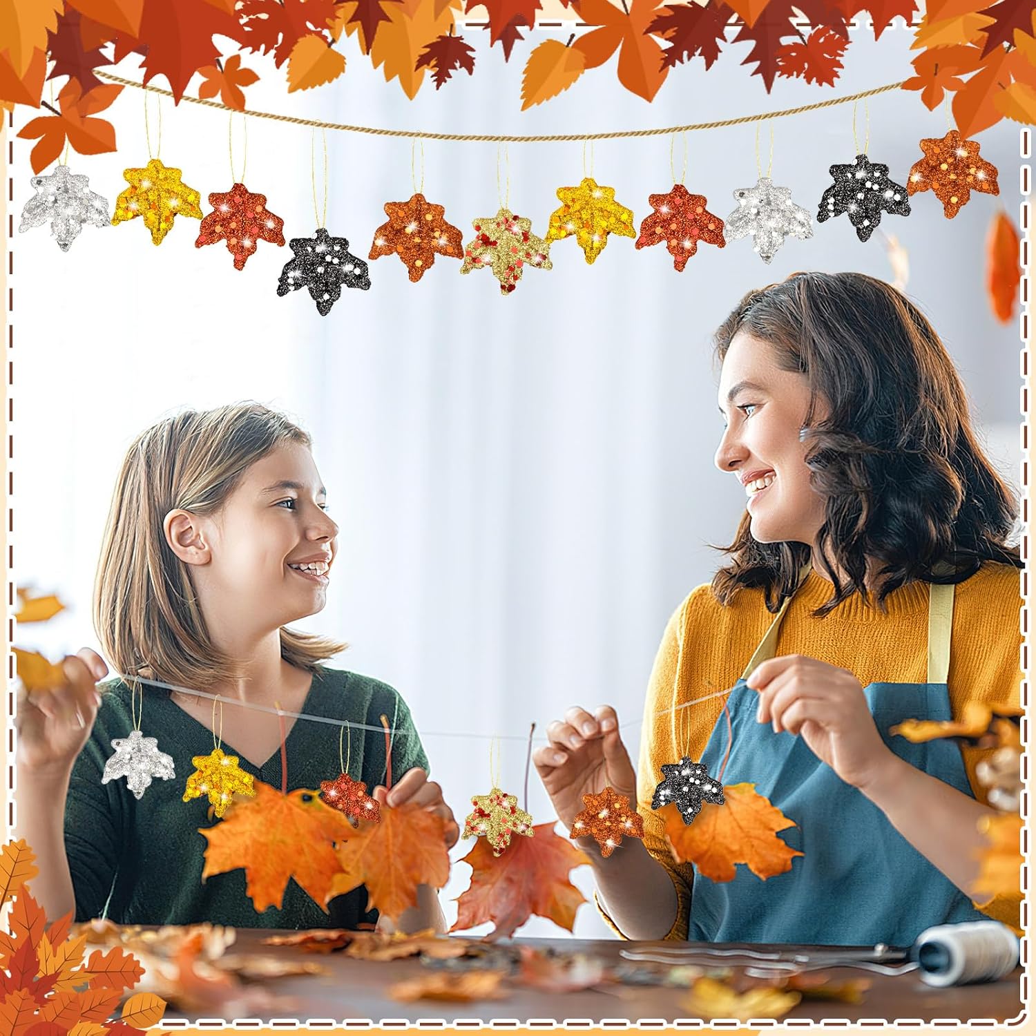 • Good-Quality Material: These foam maple ornaments are made of foam, light and have good durability. The Thanksgiving glitter maple leaves have sparkling powder on the surface, which makes the mini hanging fall leaves more dazzling in the light
