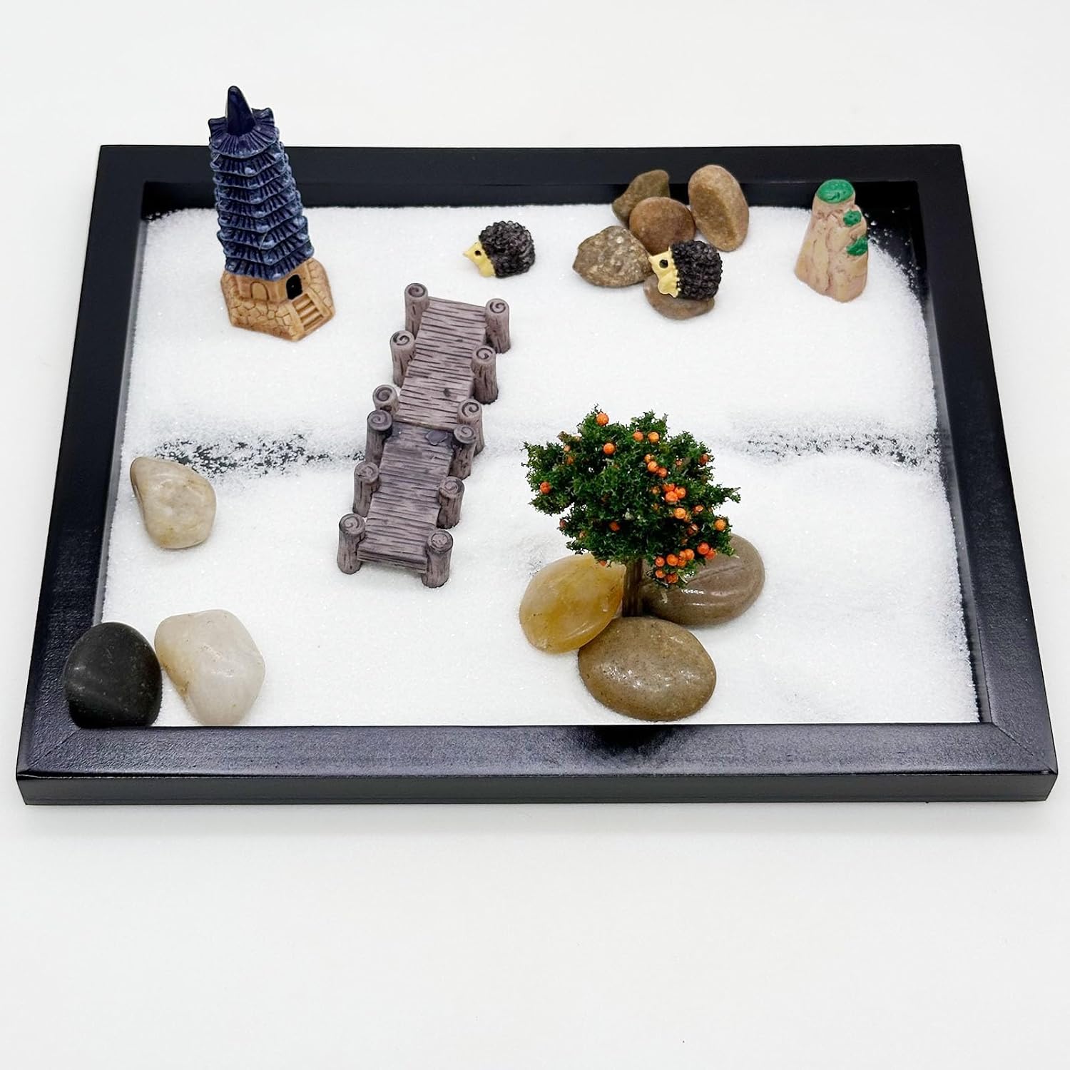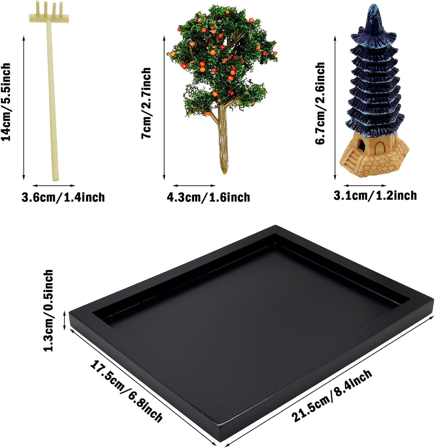 - Mini Zen Garden Kit: The set includes 22 PCS yard miniatures and 1 PCS 21.5 x 17.5 x 1.3cm/ 8.4 x 6.8 x 0.5 inch bamboo tray. Use this mini tabletop sand Zen garden! Wish you enjoy your garden time.