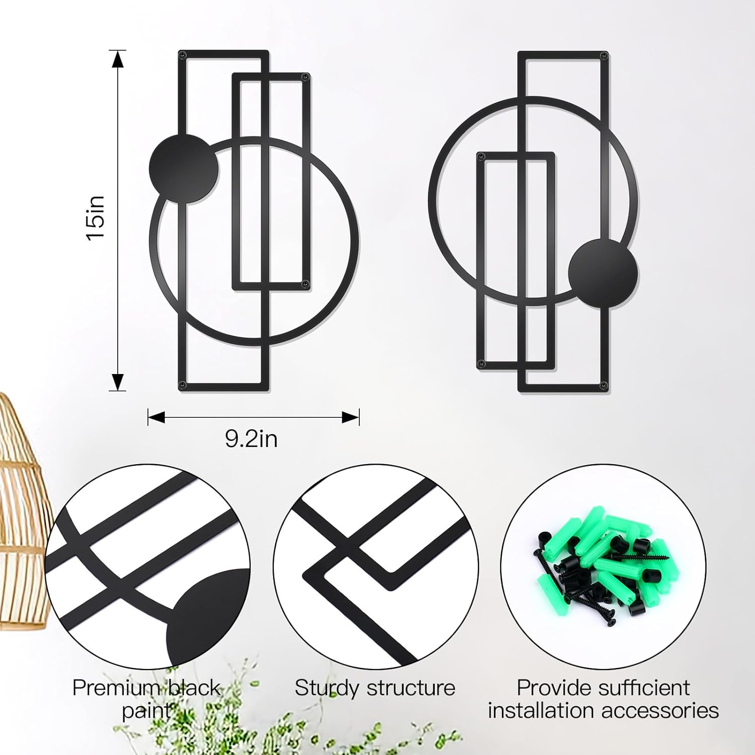 OYEFLY 2 Pcs Metal Abstract Wall Art,Modern Geometric Decor (Black, style 1)