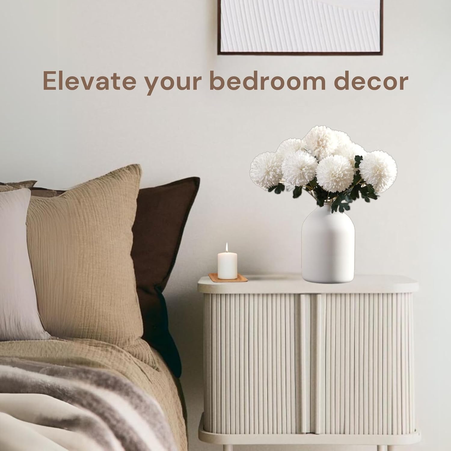 - 10 stems Artificial White Flowers - Elevate your home decor with these large faux kiku flowers, featuring 10 flower stems made from premium silk, each stem measures 17.7 inches long. The realistic look and lifelike appearance create a sophisticated decor accent, making these artificial flowers a perfect choice for those who seek design elegance and modern style in their interior spaces. Each stem consists of large white flower head and green leaves.