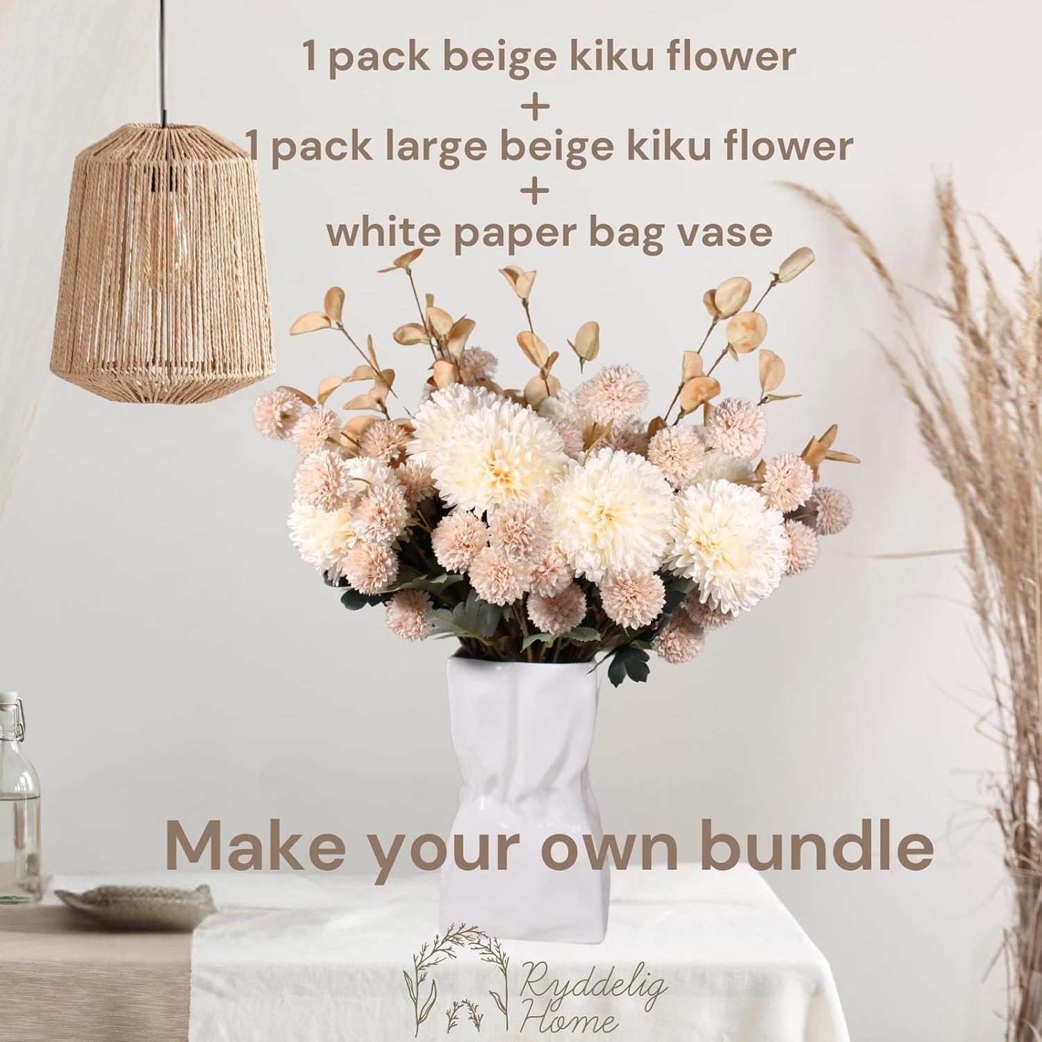 Large Kiku Flower Beige 10 Stems, Silk Flowers Bulk Boho Bouquet, Large Artificial Flowers, Tall Flowers With Long Stems, Realistic faux flowers Neutral Home Decor, Flores Artificiales Para Decoracion