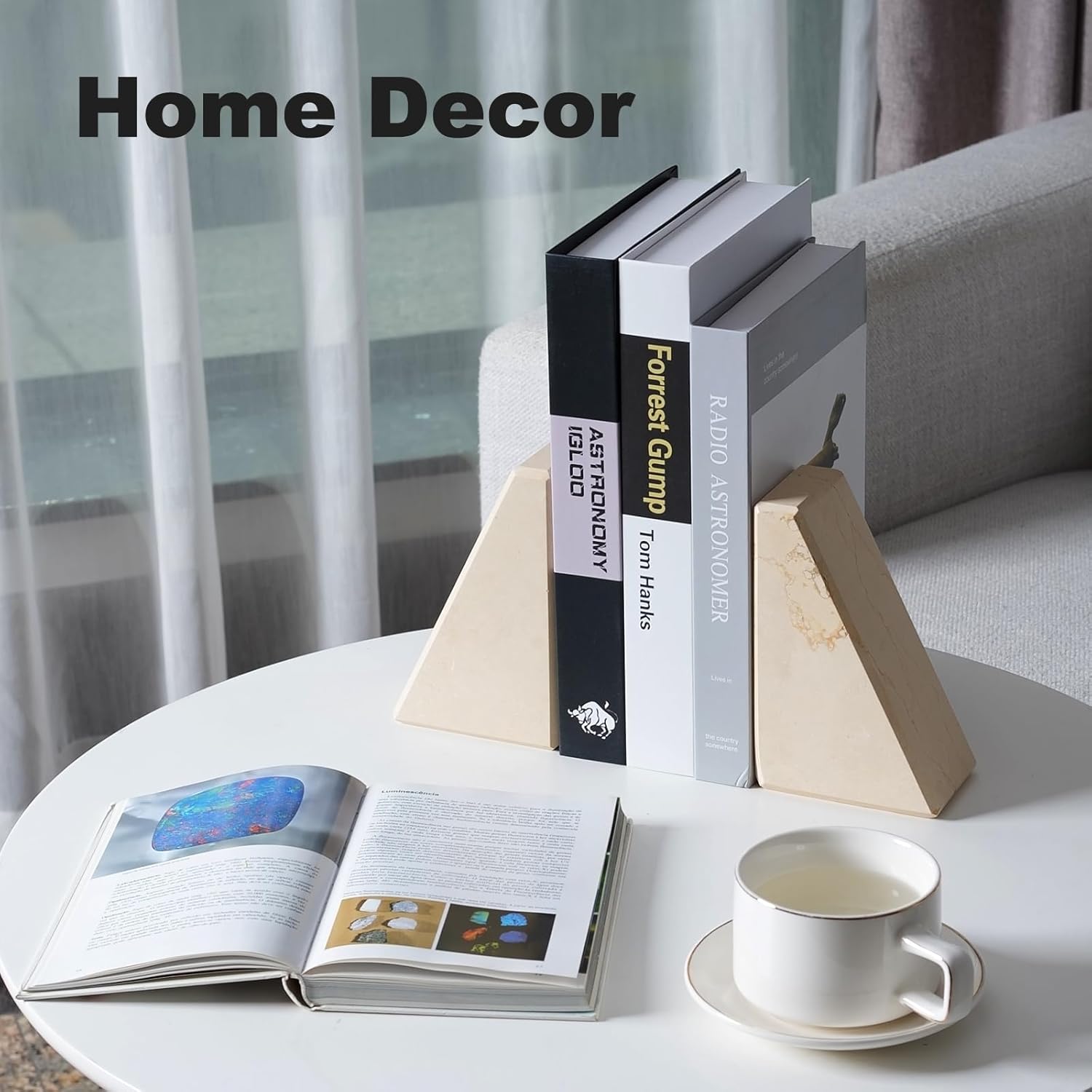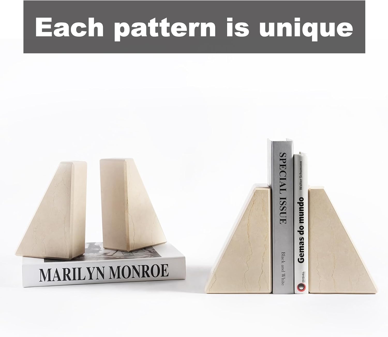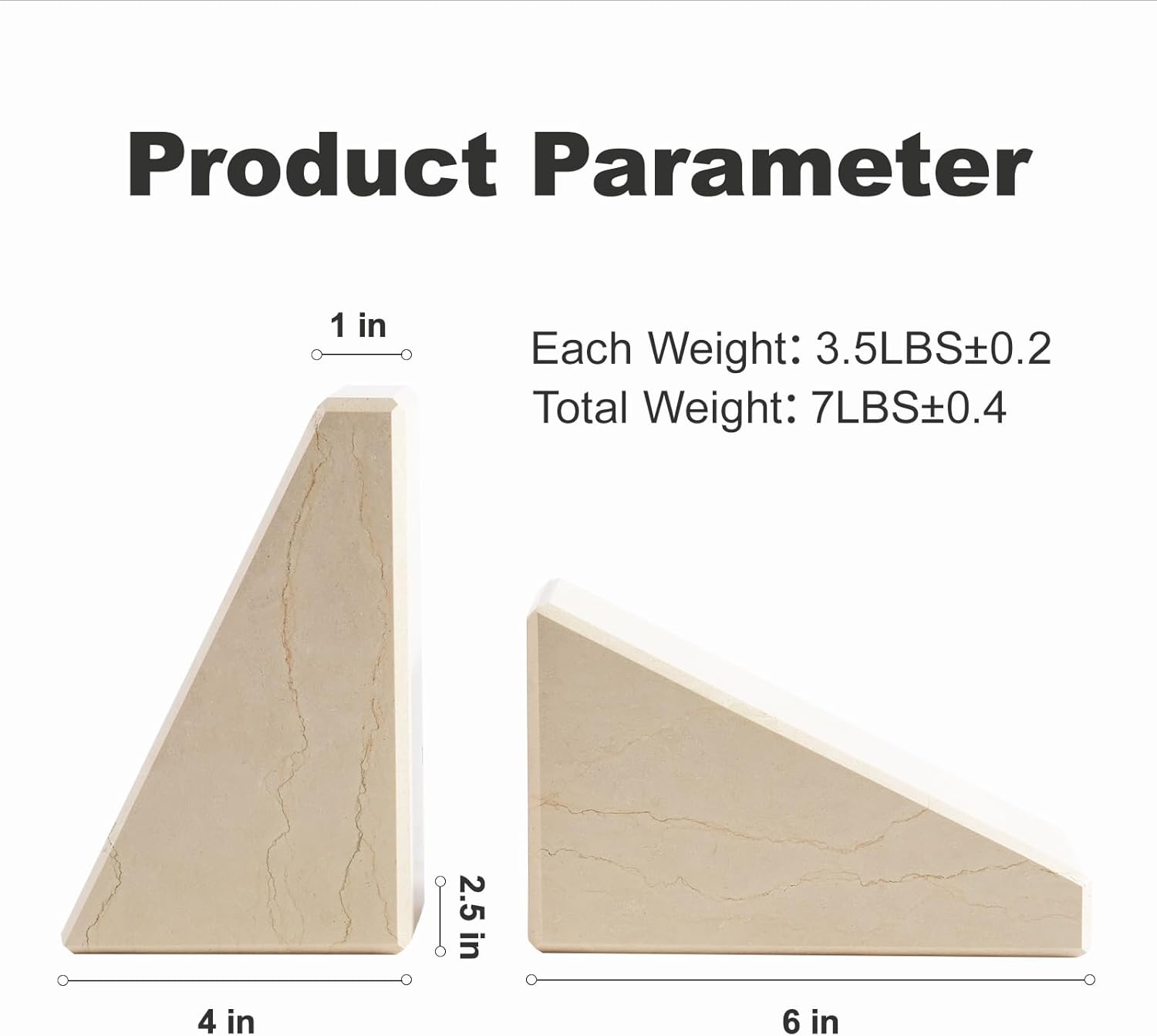 - NATURAL MATERIAL: The heavy duty bookend weight 7LB and are equipped with 4 non-slip pads to effectively minimize scratches on your desktop. Make your reading time more relaxing and ensure the safety of you and your family with this stone bookends for shelves.