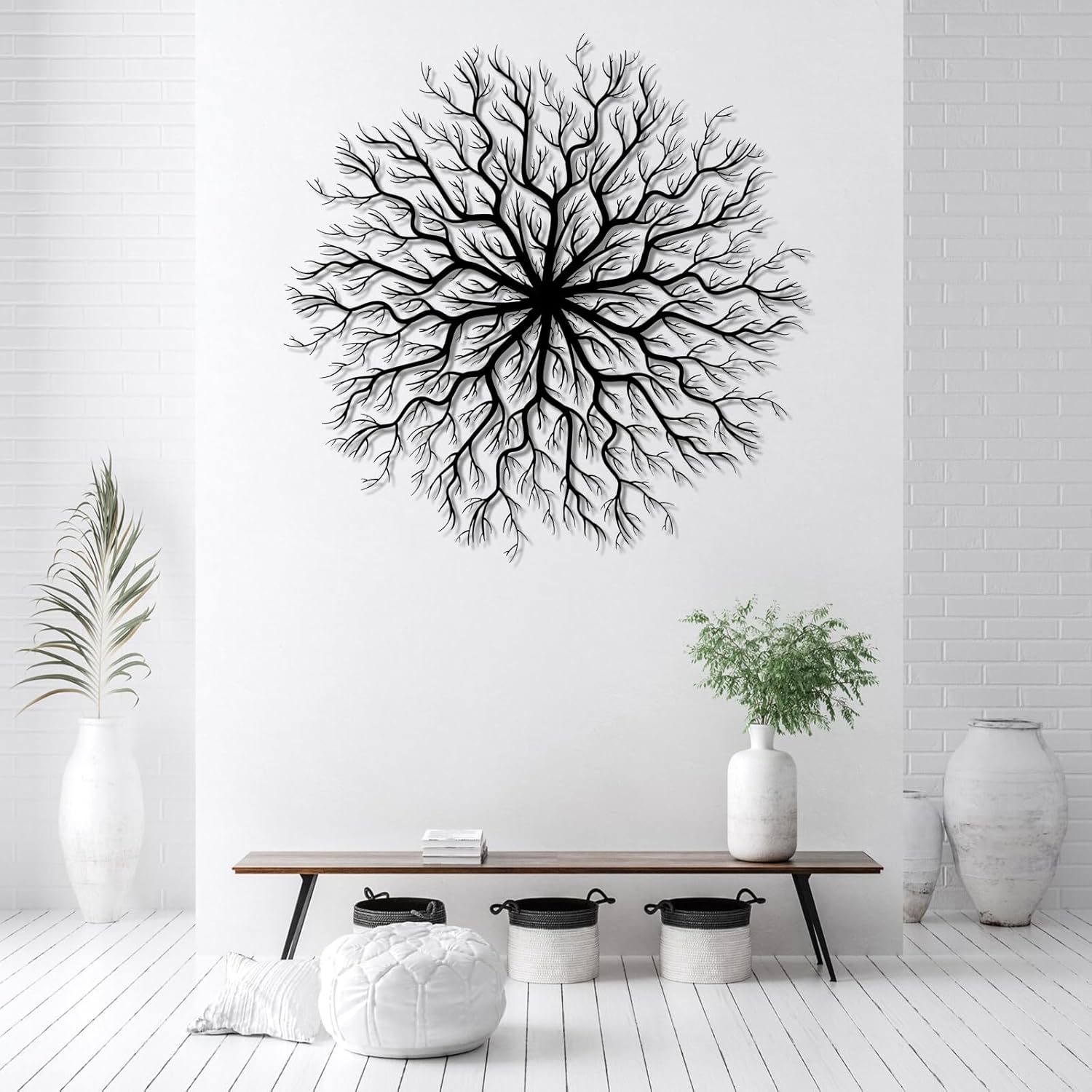 Tree of Life Metal Wall Art, Metal Tree Wall Art, Large Round Sculpture, Round Branch Wall Decor, Large Branch Artwork, Nature Sign, Wall Decor for Living Room, Housewarming Gift (Silver, 39"x39"|100x100cm)
