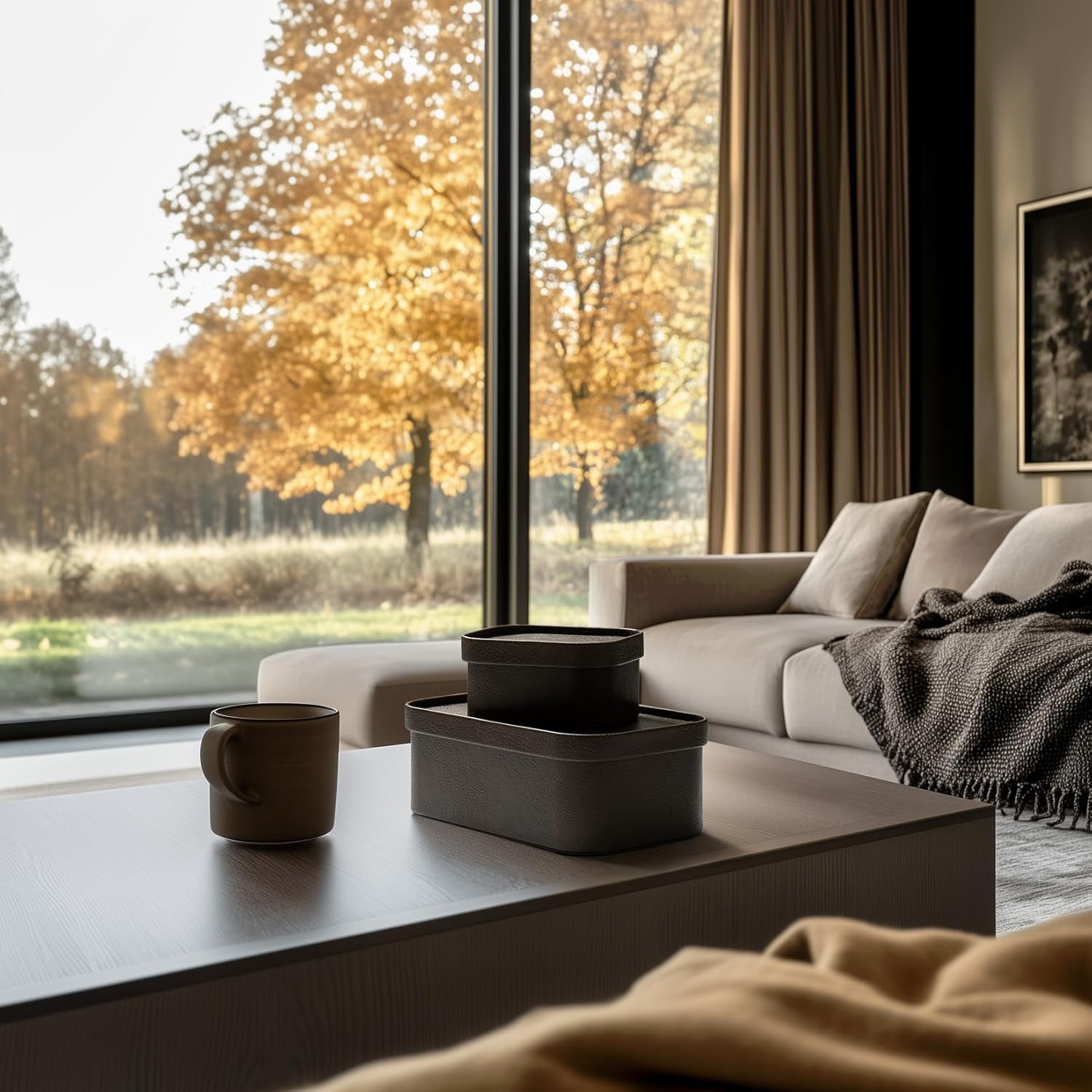 - CHIC STORAGE BOX TRIO: This stylish 3-piece set includes one spacious Large Box and two sleek Smaller Boxes. Stack them to maximize storage space without sacrificing style—perfect for tidying up any room