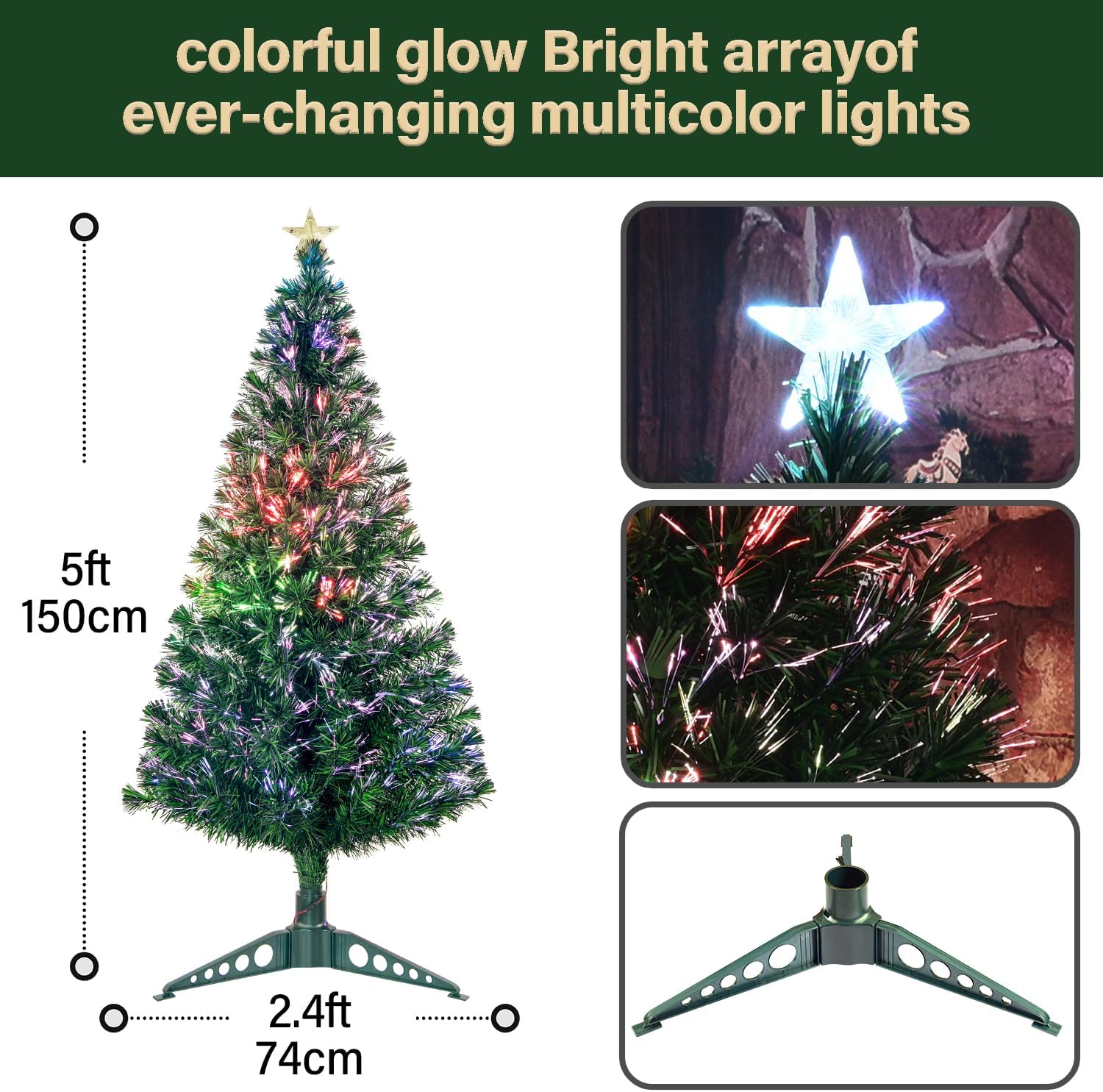 5FT Fiber Optic Green Christmas Tree Artificial Tree with Stand,Pre-lit Full Xmas Tree with Top Star Perfect for Indoor Holiday Decoration