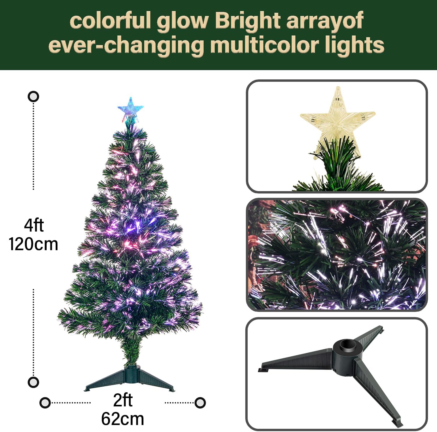 4FT Fiber Optic Green Christmas Tree Artificial Tree with Stand,Pre-lit Full Xmas Tree with Top Star Perfect for Indoor Holiday Decoration