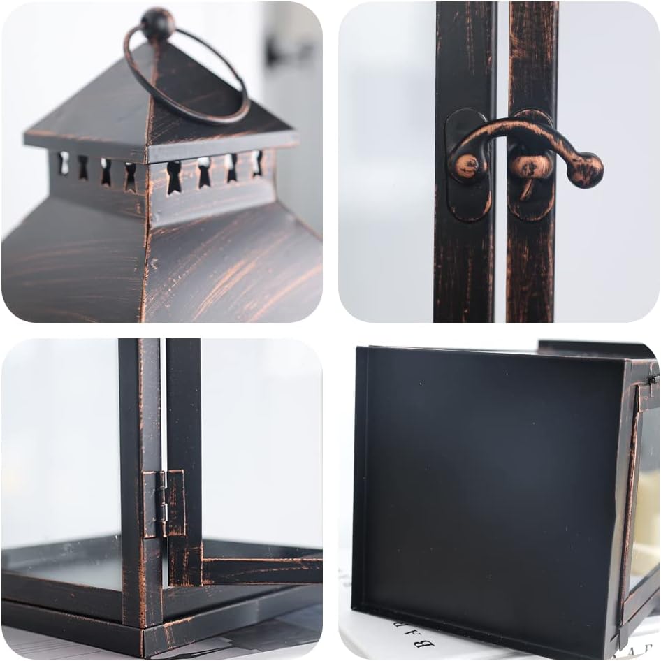 - Suitable for Most Outdoor Scenes——The set of 4 Large Bronze vintage candle lantern is perfect for outdoor use. The metal material can withstand wind and rain, while the high-quality glass prevents rainwater from getting in and allows you to see the bright, flickering candles, creating a fantastic atmosphere.