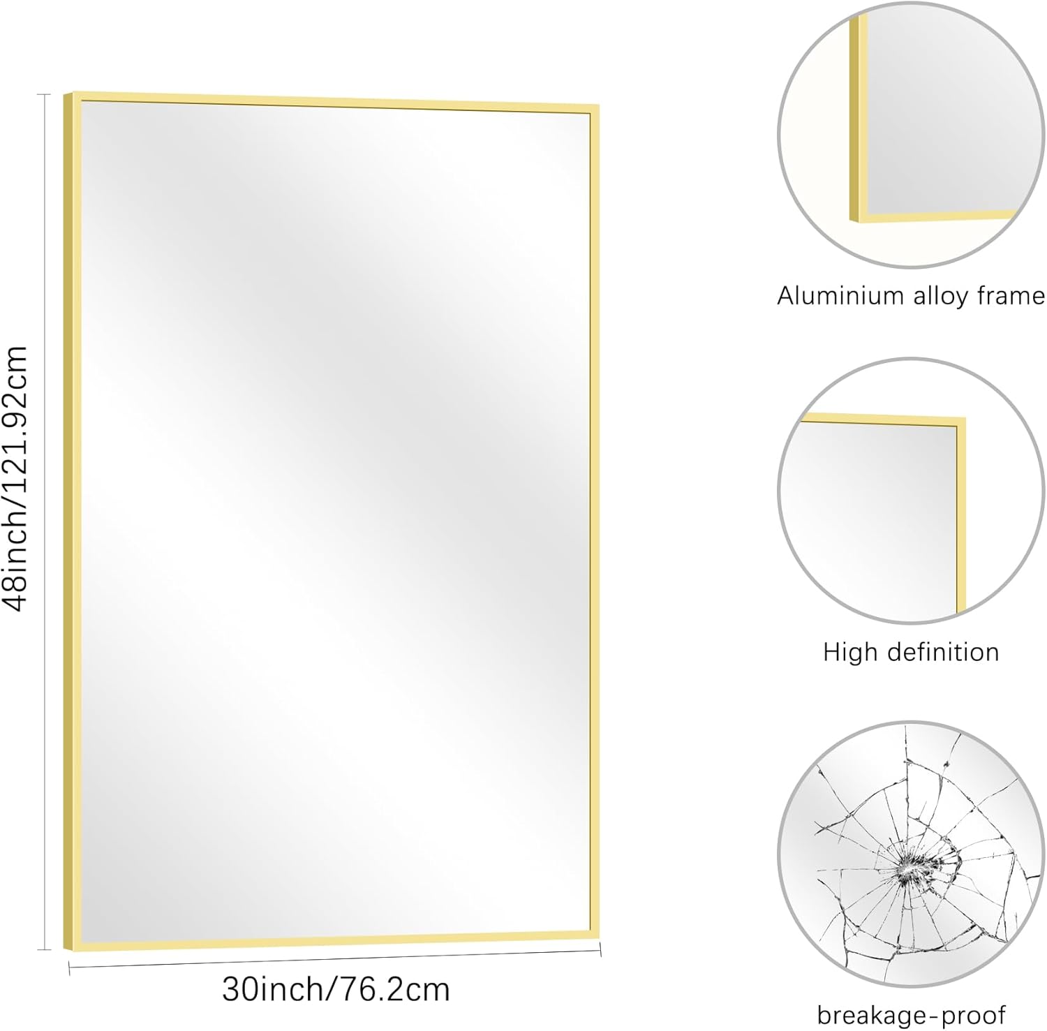 - DURABLE FRAME: Bathroom wall mirror frame is aluminum alloy frame,with good moisture resistance,anti-corrosion and sturdy. Gold classic color will provide your room with unique decoration to help you modernize room.