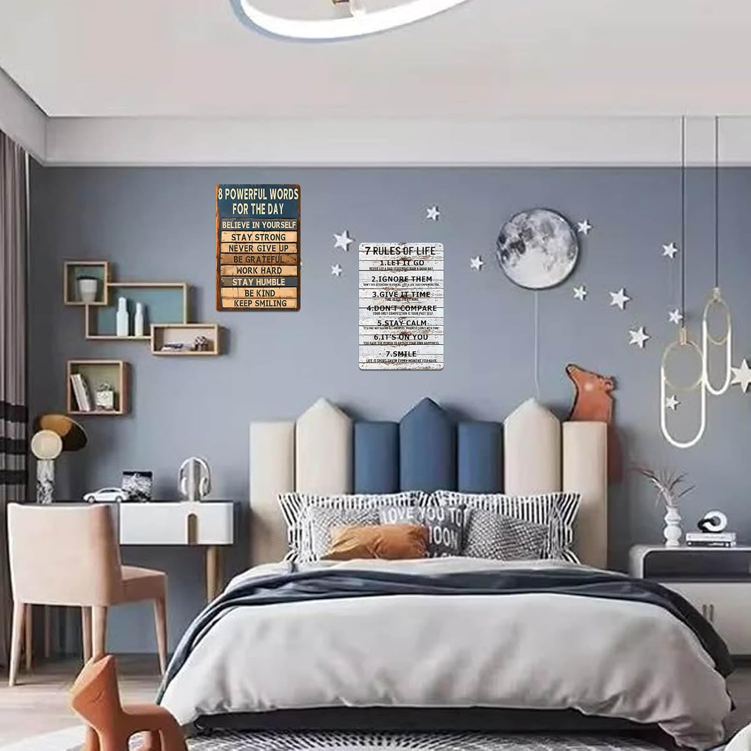 Motivational Metal Tin Sign - 8 Powerful Words for The Day Posters - Inspirational Wall Art Positive Quotes for Home Gym Office Classroom Decor Durable Rustic Wall Decor for Teens Adults 8x12 Inch