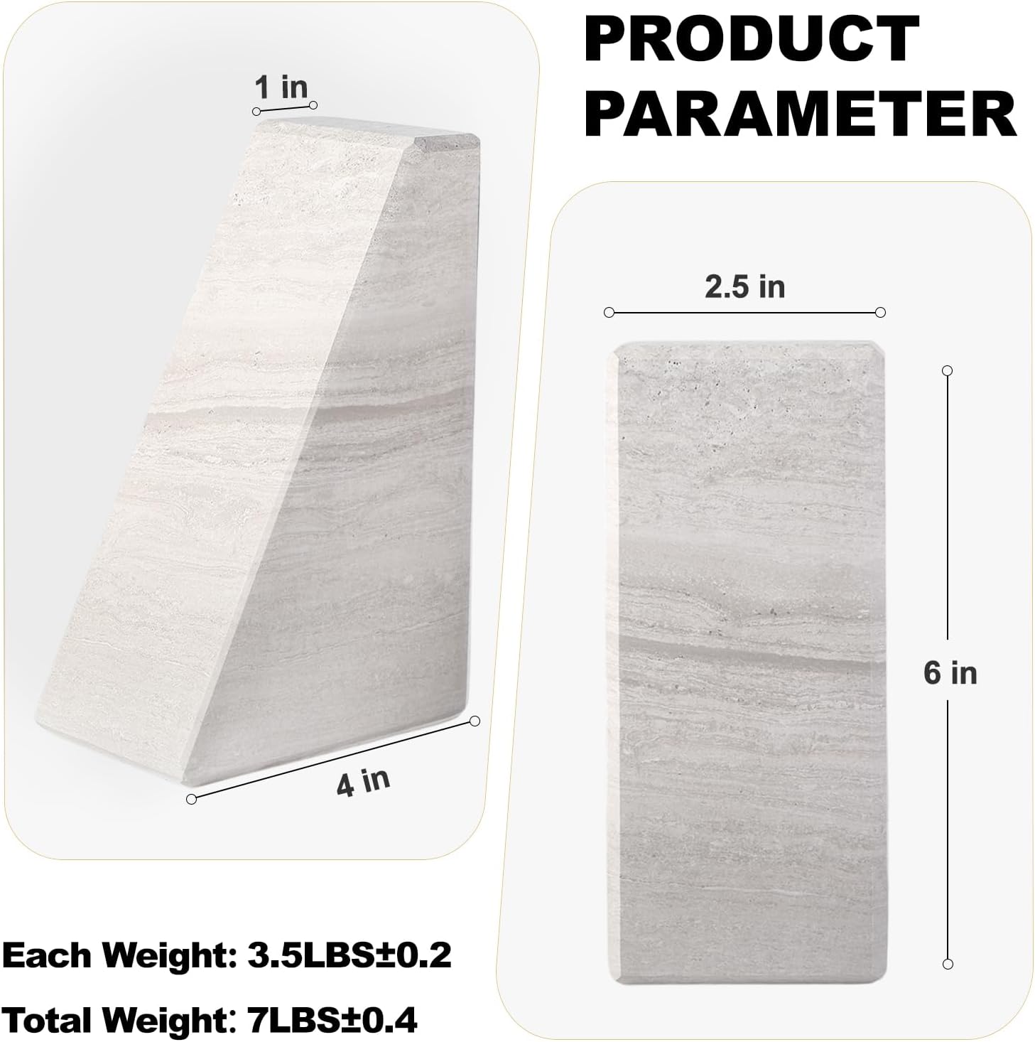 - NATURAL MATERIAL: The heavy duty marble bookends weight 7LB and are equipped with 4 non-slip pads to effectively minimize scratches on your desktop. Make your reading time more relaxing and ensure the safety of you and your family with this stone book ends for shelves.