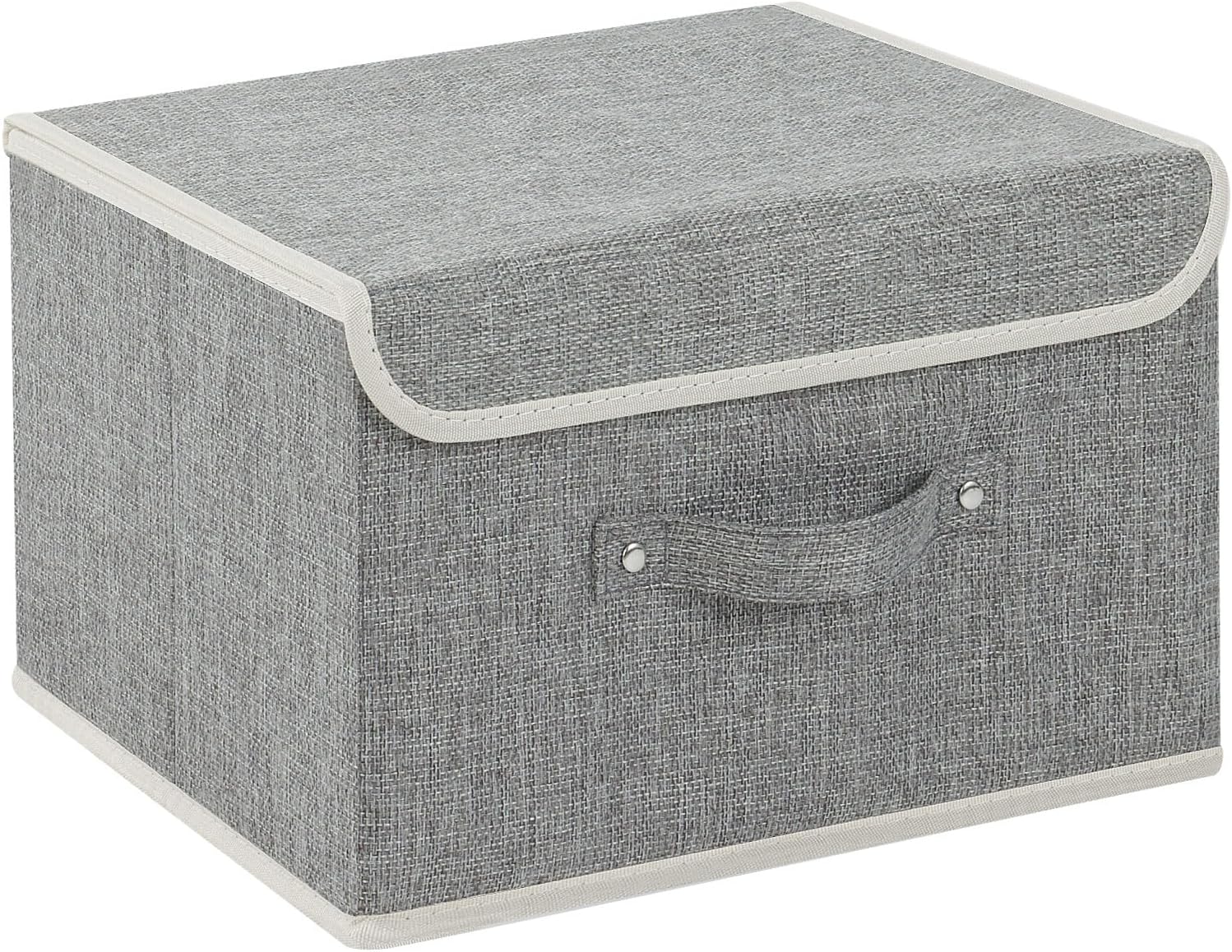 Storage Boxes, Collapsible Storage Bins with Lids, Cotton and linen cloth Storage Baskets with Handle, for Books, Closet, Bedroom, Home, 13x9.1x7.9 in, Grey