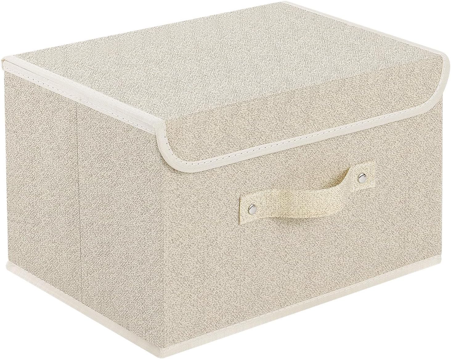 Storage Boxes, Collapsible Storage Bins with Lids, Cotton and linen cloth Storage Baskets with Handle, for Books, Closet, Bedroom, Home, 13x9.1x7.9 in, Grey and Beige