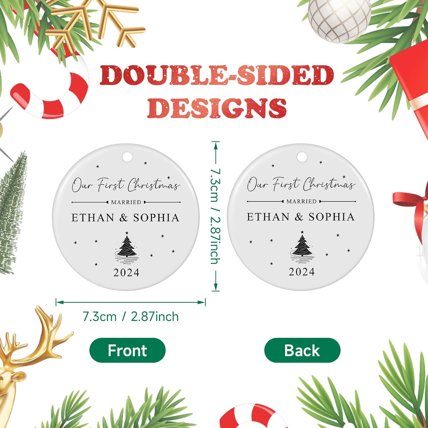 • 【Wedding Engagament Anniversary Ornament】This our first christmas 2025 is suitable for Christmas, Thanksgiving, Wedding, Engagement, Anniversary, Birthday, a new home or holiday tree decorations. Share the happiness of your first Christmas married/engaged with friends and family through this adorable ornament. It's more than just an ornament. It's a keepsake that serving as a timeless symbol of your love and the beginning of your lifelong journey together, capturing the cherished memories.