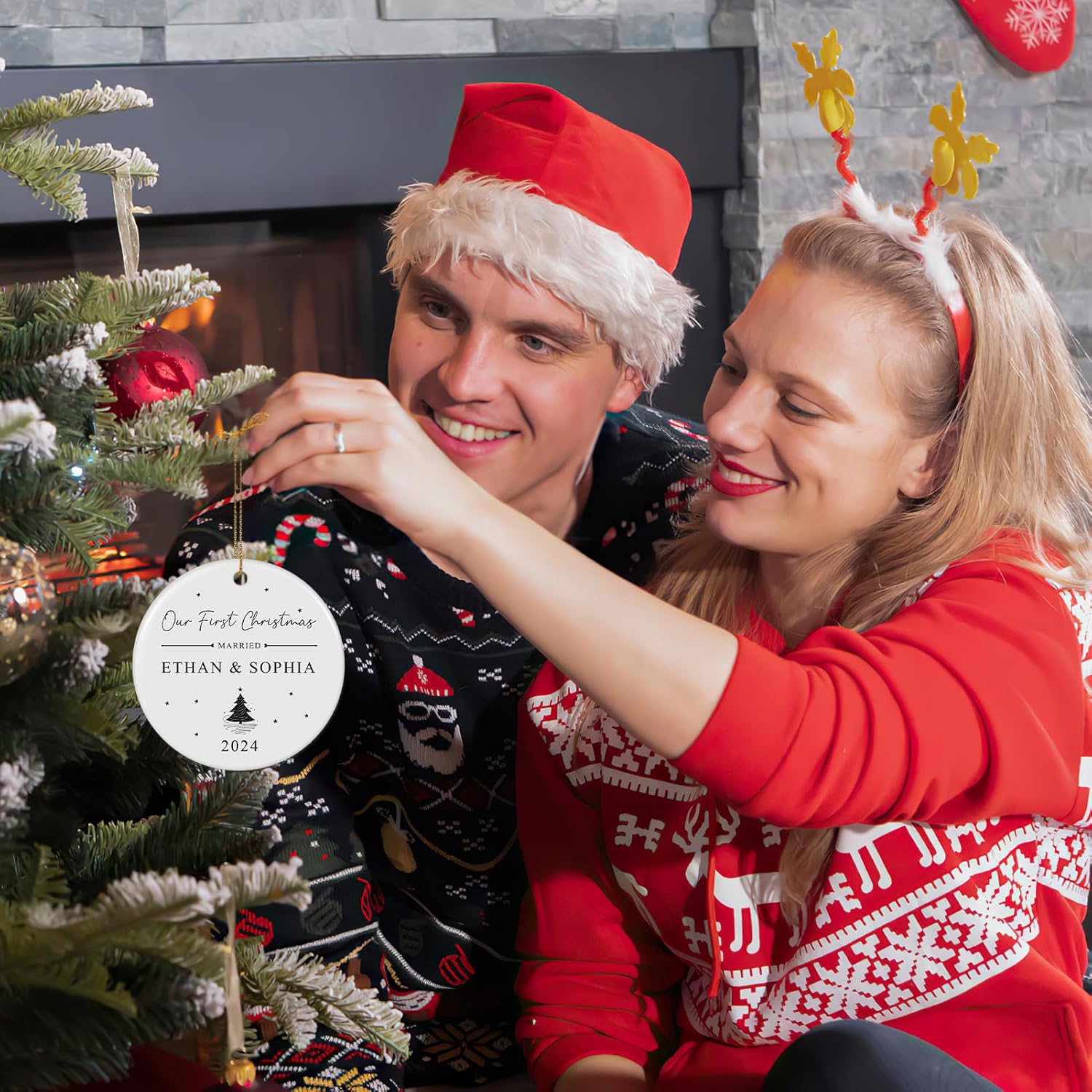 First Christmas Married Ornament 2025, Personalized Christmas Ornaments, Cuztomized Wedding Gifts, Just Married Gifts for Newlywed, Bridal Shower, Couples