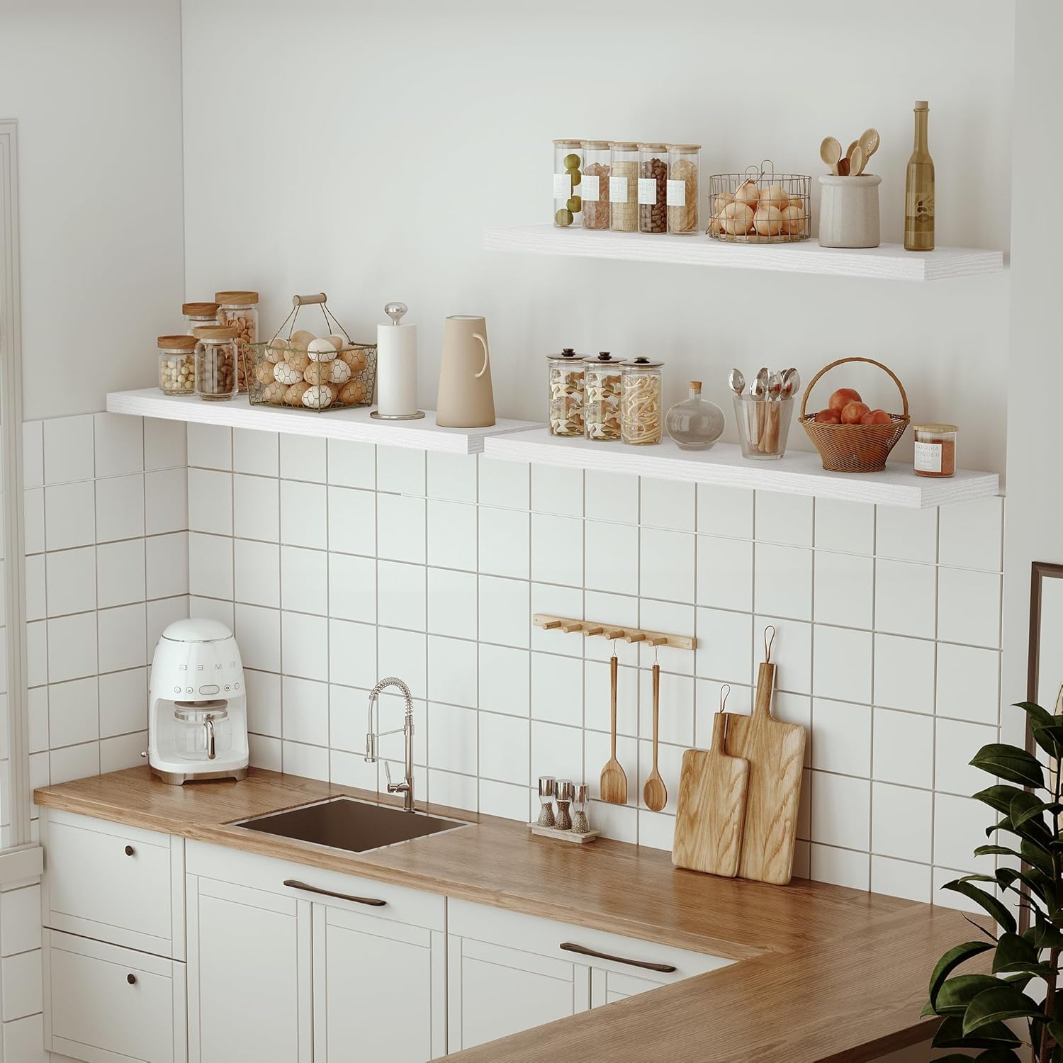 - Versatile & Functional - Our Decorative shelf for wall Adds character to any modern, traditional, rustic, or farmhouse decor home & kitchen styles.These shelves for wall decor above a small desk in your guest room, desks, fireplaces, over toilet storage shelf,living room wall decor, corner bookshelf, bathroom decor, office wall decor,or vanities and so on. If you are seeking easy-to-install, stylish floating shelves to add a contemporary touch to your home, these shelves are an excellent choice.