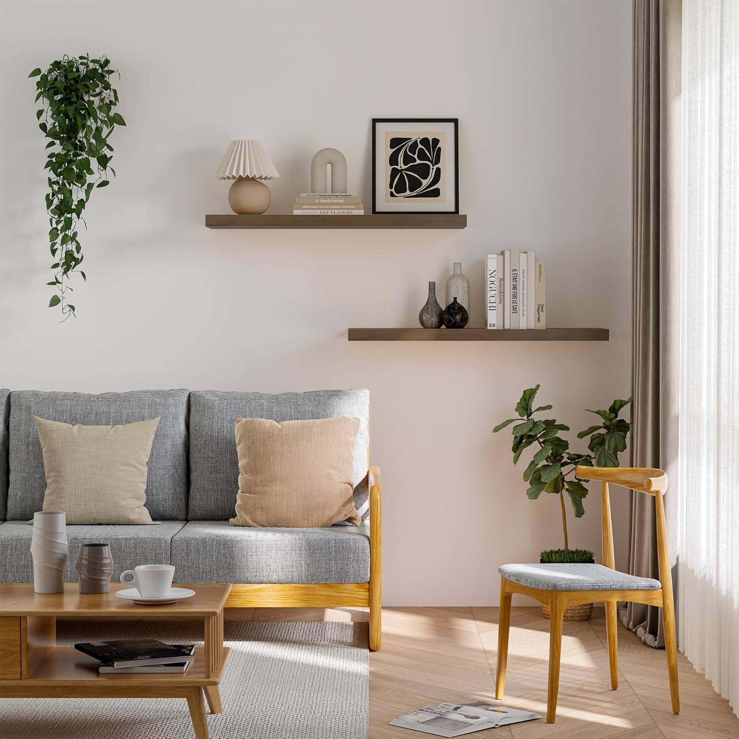 Wood Floating Shelves for Wall 36” x 8”x 1.4” Shelf Floating Rustic Farmhouse Decor, Heavy Duty Shelf Hold 80 lbs, Wall Shelves for Bathroom Living Room Kitchen Bedroom Office, 2 Packs Walnut