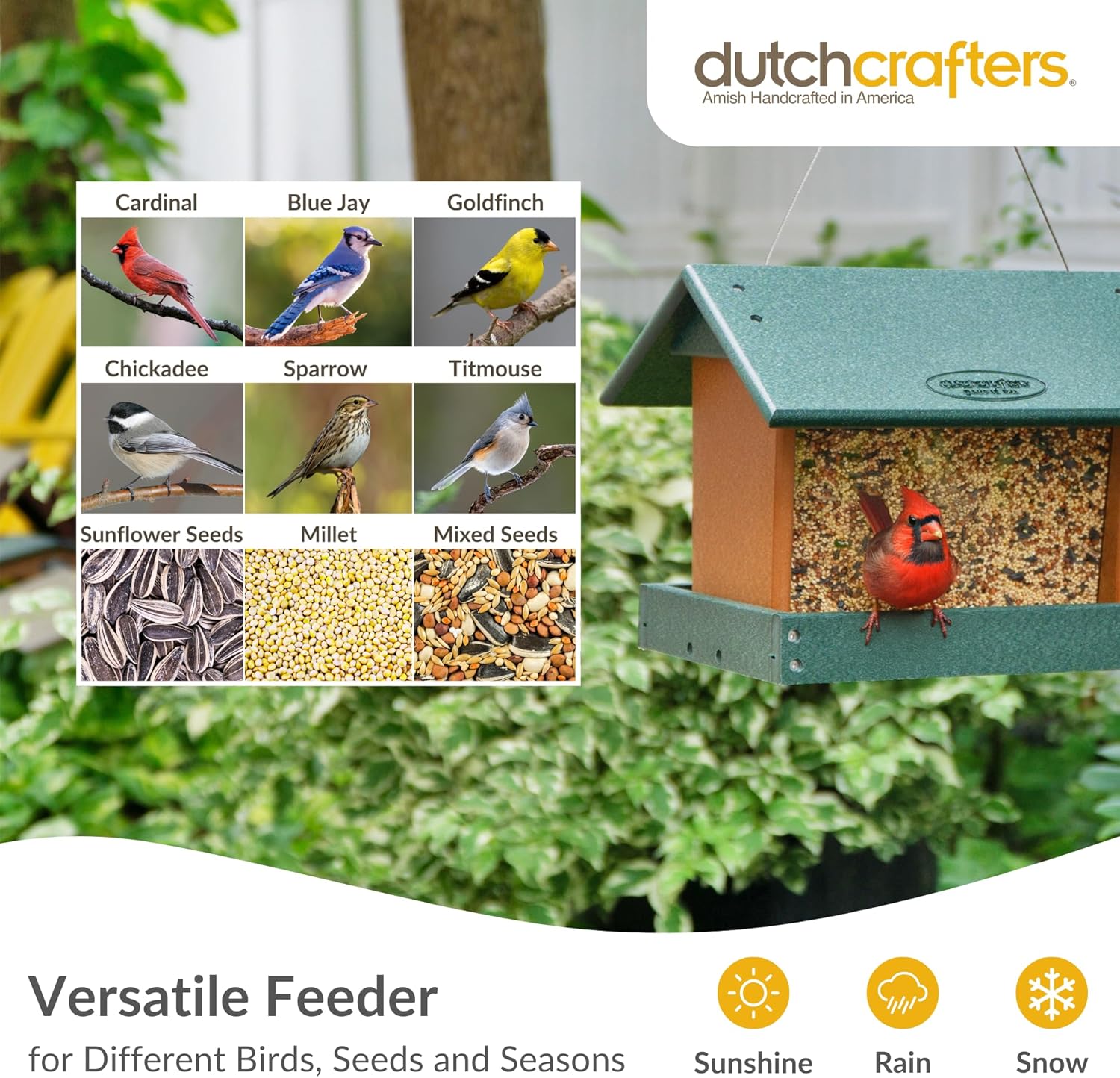 - Made in USA - Our poly bird feeder for outdoors is proudly made in America using high-quality materials. Each large bird feeder is carefully crafted by a skilled craftsman in Indiana. Our hopper bird feeders for outdoors embody our dedication to local craftsmanship and superior quality