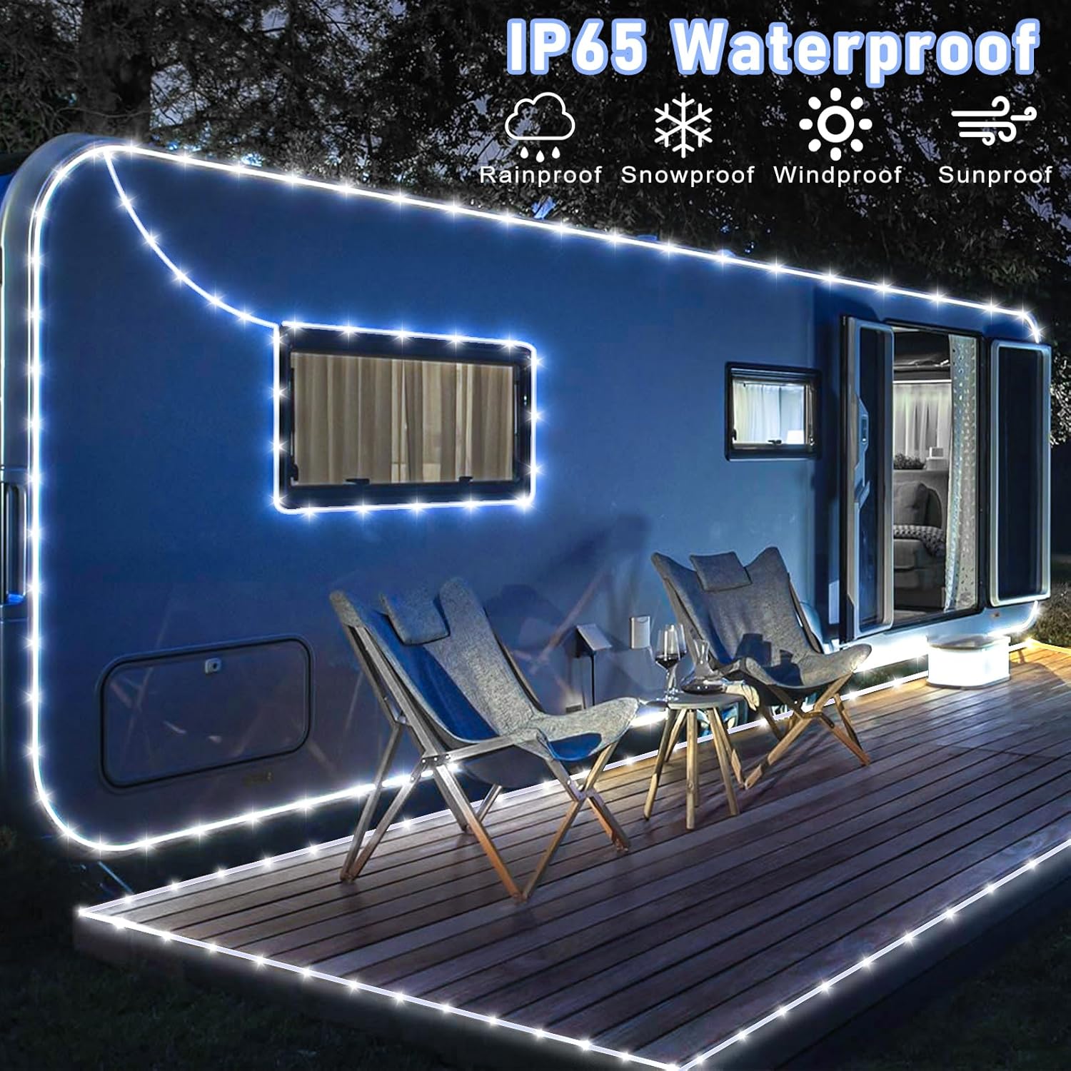 - 【Waterproof Outdoor String Lights】- IP65 Waterproof, they are suitable for all weather use, remaining bright and sparkling even during strong rain and windy days. The outdoor rope lights is ideal for year-round outdoor decor and can illuminate gazebos, canopy, corridors, gardens, and patios. But please note the plug is not waterproof.