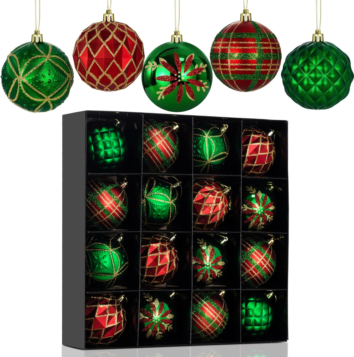 LARAINE Christmas Balls Ornaments 16 Pcs Decorations for Christmas Tree, Shatterproof Hanging Ball Variety Gift Set of Holiday Party Wedding Decoration (Green Red)