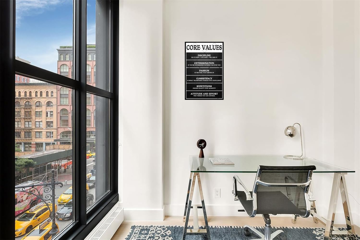 Core Values Motivational Metal Tin Sign - 12x8 Inch Inspirational Wall Art Poster, Positive Quote Office Decor for Workplace, Living Room, Bathroom, Home & Gym - Rustic Vintage Home Decoration Gift