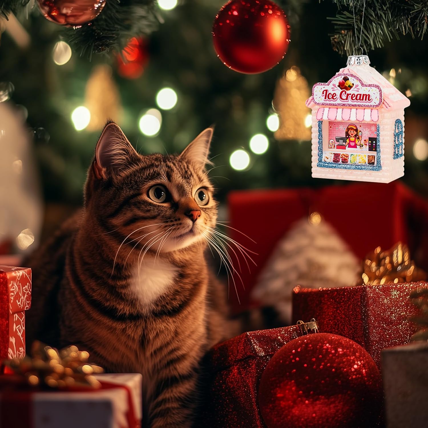 Hanging Christmas Ornaments, 2025 Glass Blown Christmas Tree Ornaments, Pink Christmas Tree Decorations, Funny Gifts & Home Decor, Ice Cream Parlor