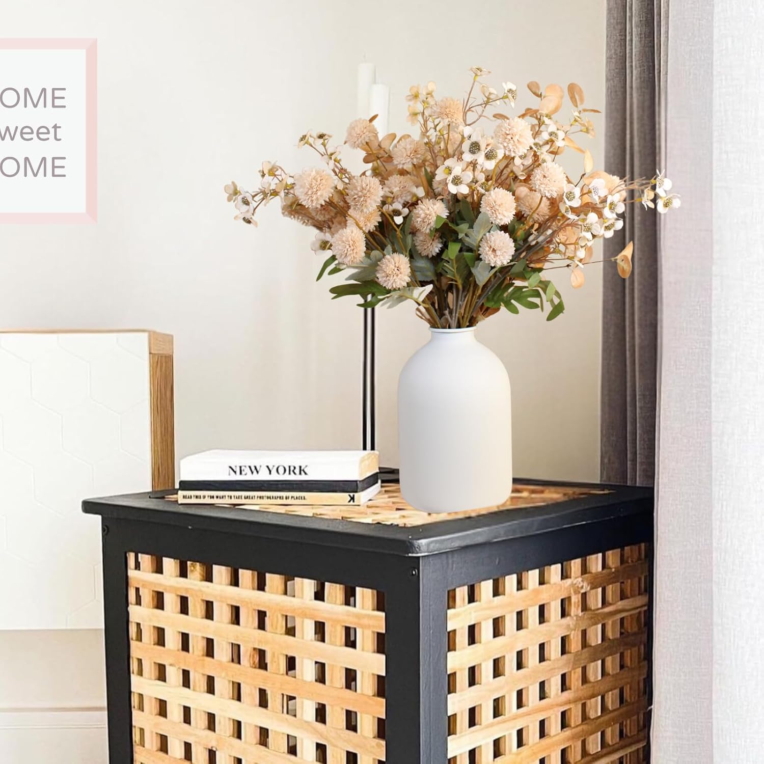 - Aethestic Home Decor - This elegant arrangement includes 10 stems beige silk mums(50 small flower balls), 2 eucalyptus stems, and 10 stems wax wild flowers artificial, designed with a real touch finish for a lifelike look. Perfect for floral centerpieces for tables, mantle decor, or dining table centerpiece decor, it brings natural beauty to modern or farmhouse settings.