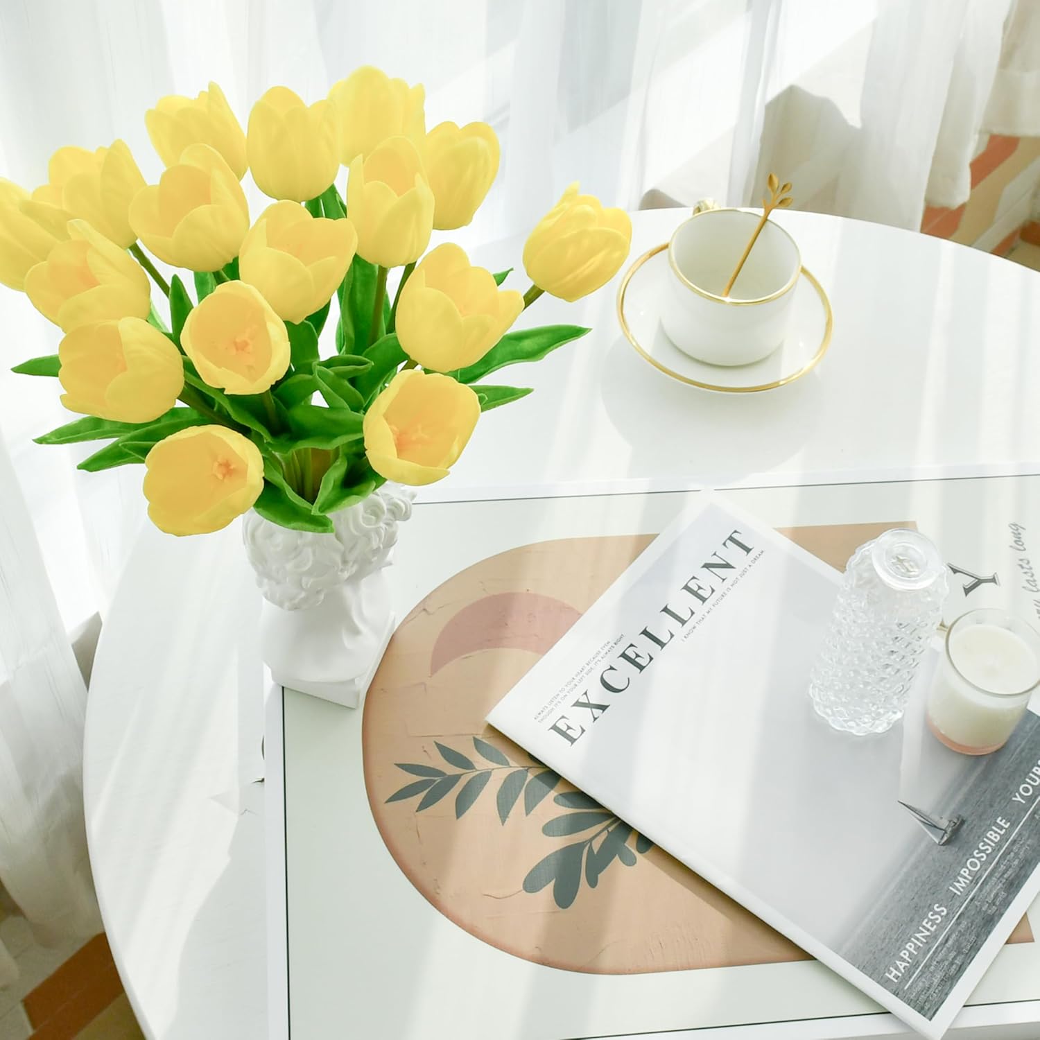 Mandy's Artificial Tulips 12 Stems Yellow Partially Open PU Faux Flowers for Wedding Home Decor 13.5 Inch