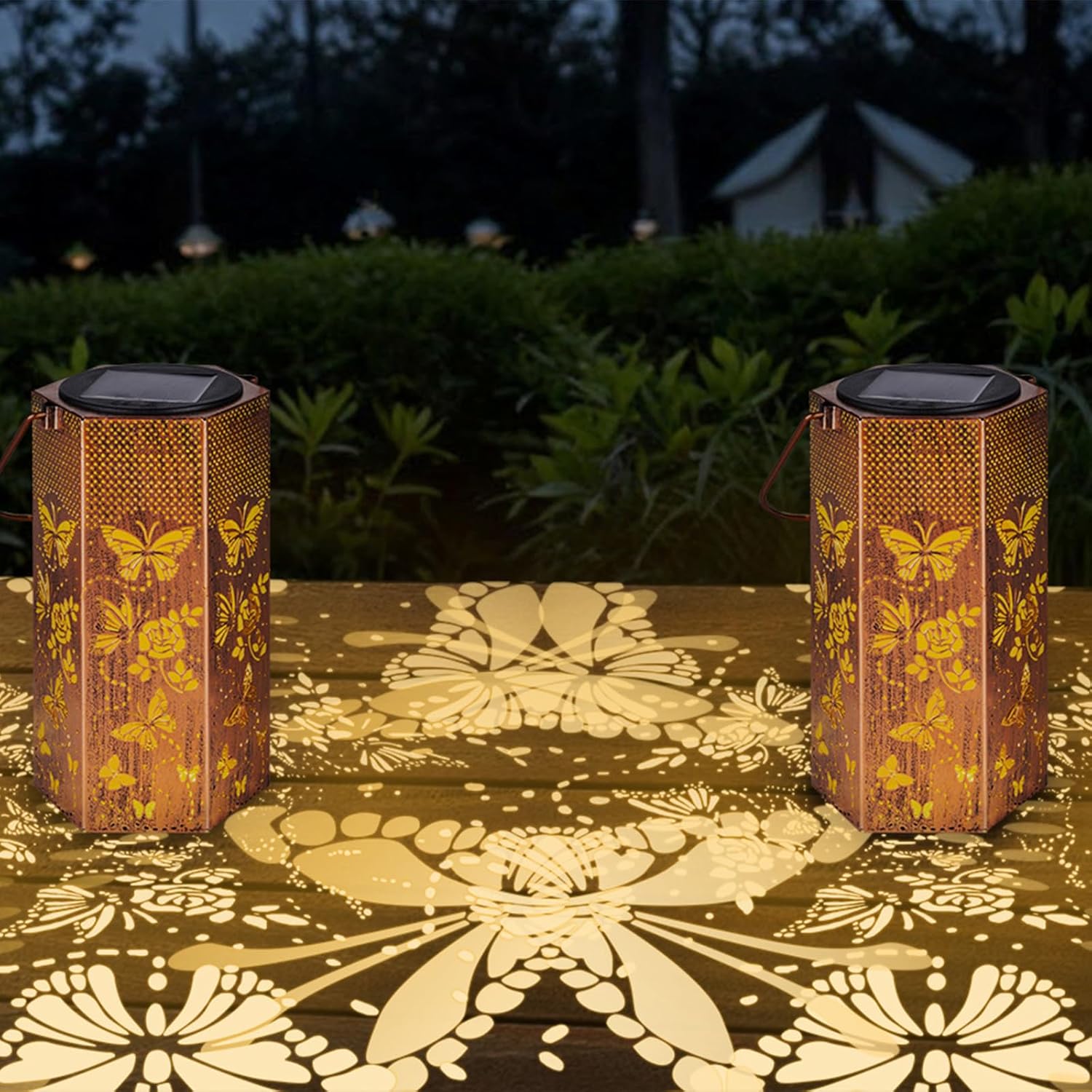 - Imaginative Garden Decor - Eandisom Outdoor Solar Lanterns are crafted from upgraded durable metal, The retro appearance, with gold copper color and hollow out metal veneer, gorgeous color, casts bright and warm light in darkness, accompanied by gorgeous and graceful patterns, adding a beautiful atmosphere to the surrounding environment. Add illuminated charm to a garden, patio, porch and outdoor tabletop with these solar lantern lights. Make your outdoor spaces unique and amazing.