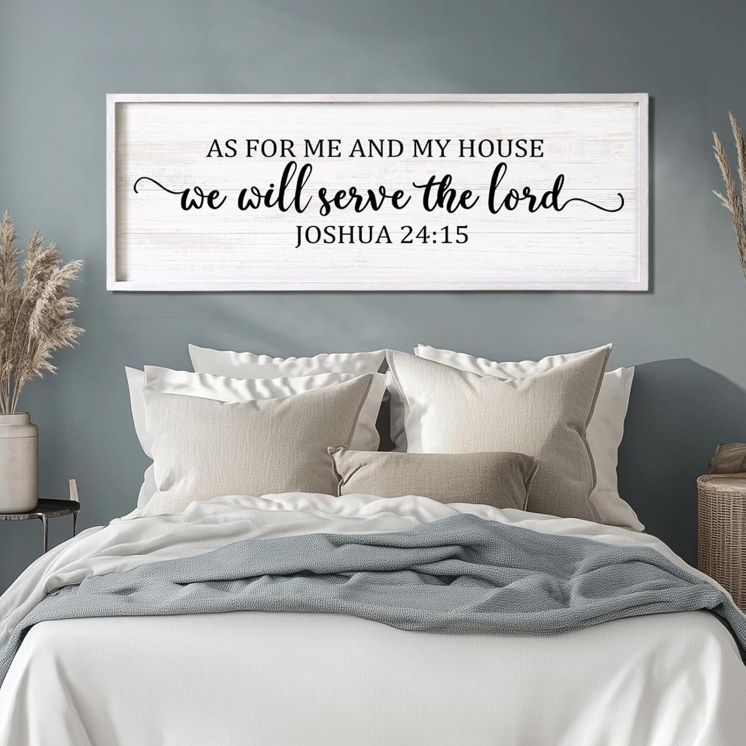 - 【Encouraging Words】JOSHUA 24:15 As For Me And My House large hanging wood sign adopt minimalist letters on the white background, showing constant reminder of faith and devotion in any setting and you passion for god, adding a touch of elegant, and classic beauty to your space and giving people a calming feeling.