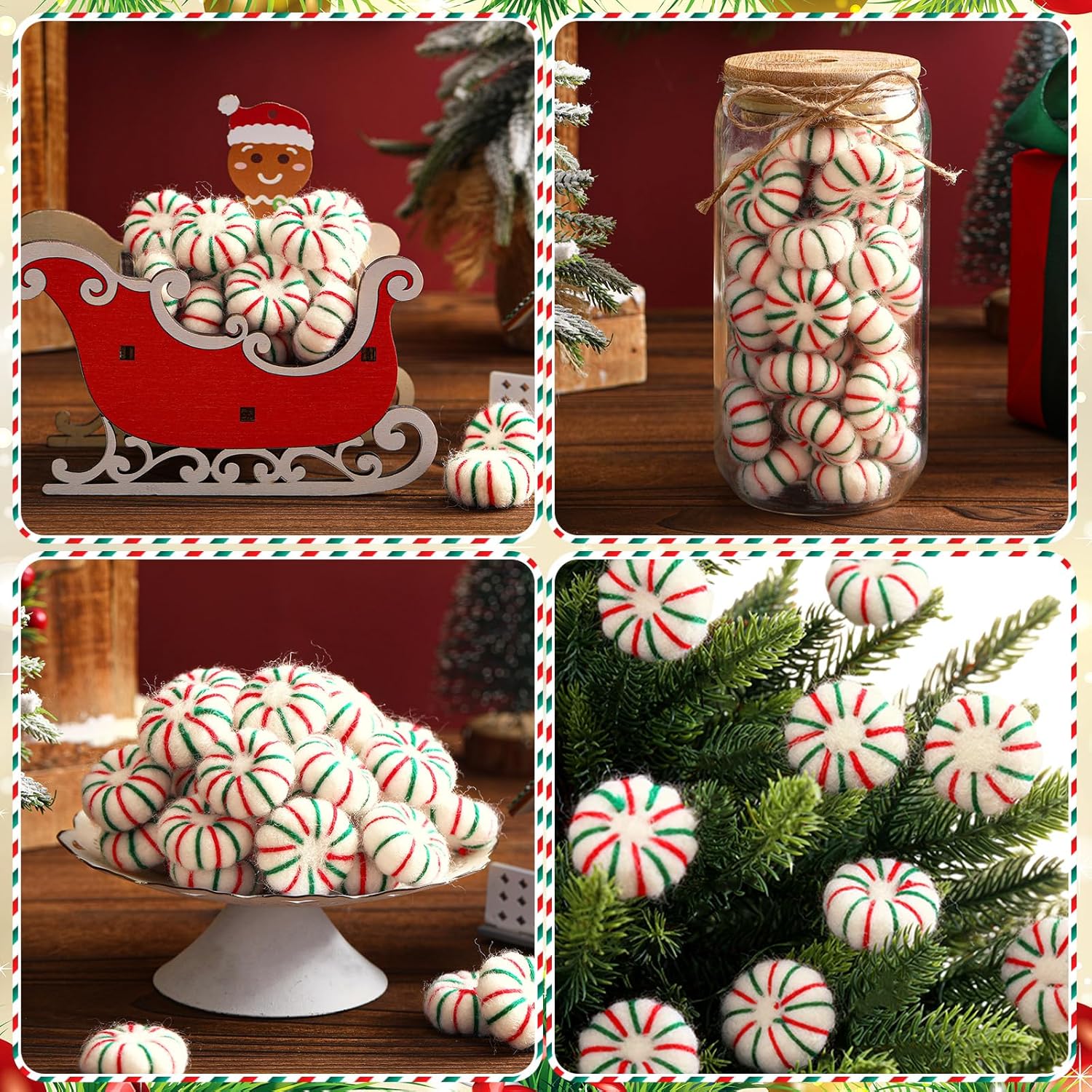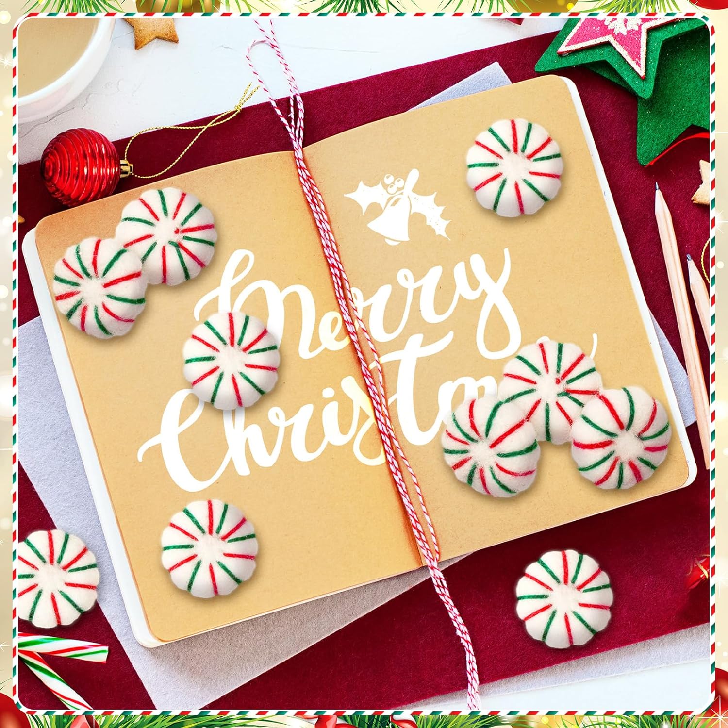 36 Pcs Felt Peppermint Decoration Christmas Wool Peppermints Christmas Arts Crafts Supplies, DIY Garland for Tree Home Vase Filler Decoration(Green)