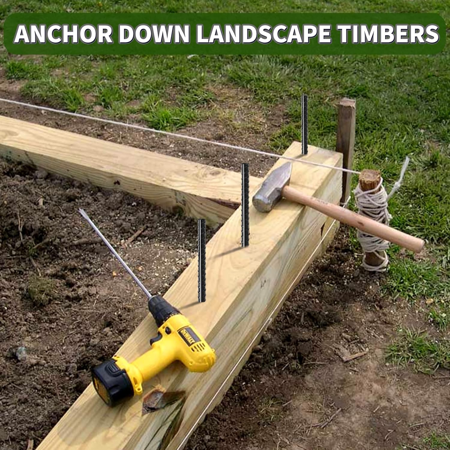 • 【Multiple Uses】Sturdy anchors are enough for any purposes, like securing trees, shrubs, vines and other garden plants stakes support, landscape timbers, concrete forming, survey markers, concrete blocks, camping tents, rebar trapping stakes etc. Perfect metal spikes for what we needed.
