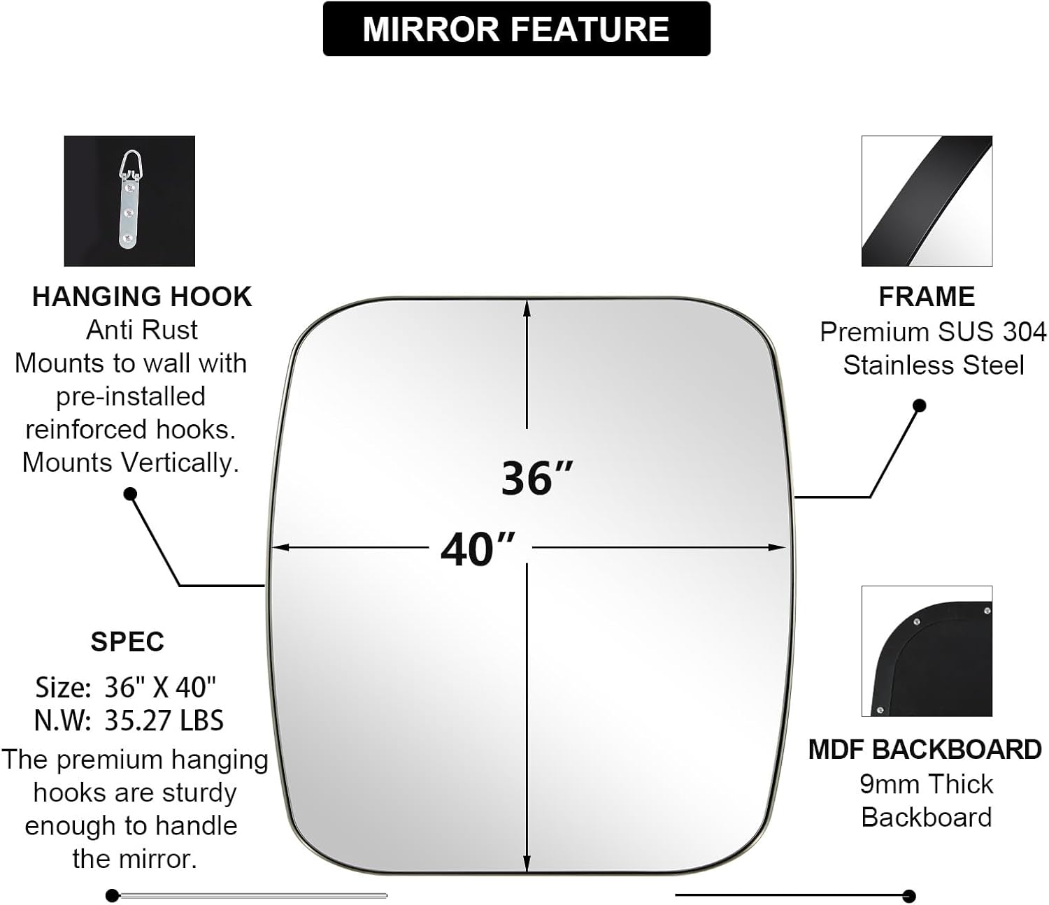 - Transform Spacious Environments: Redesign your spacious bathroom with the large 36x40 inch mirror. Its generous size and premium craftsmanship create a luxurious feel, reflecting light and space to amplify the room's aesthetic appeal and functionality