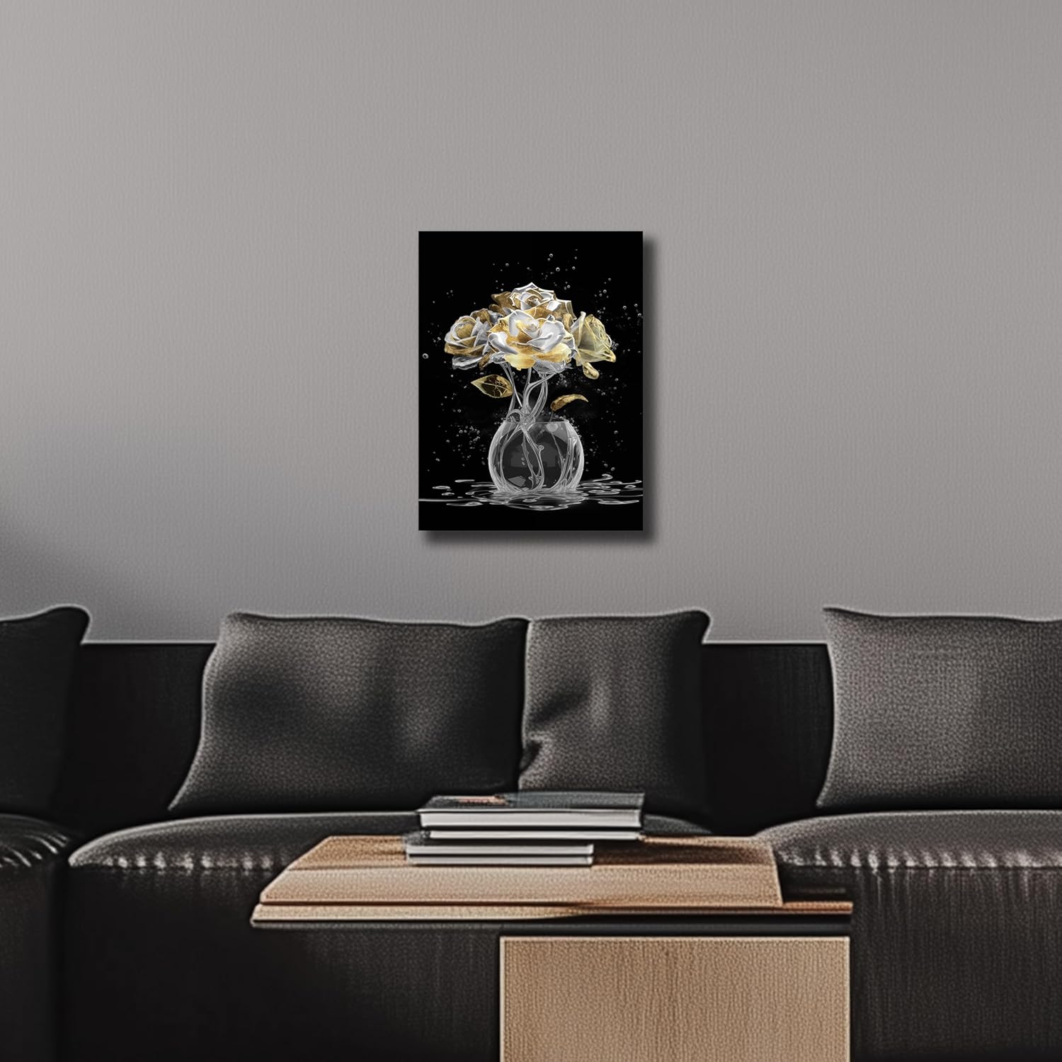 Belmrxne Flower Prints Wall Art White and Gold Canvas Painting Modern Minimalist Decor for Living Room Bedroom Dining Room Office Home Decor 12x16 inch