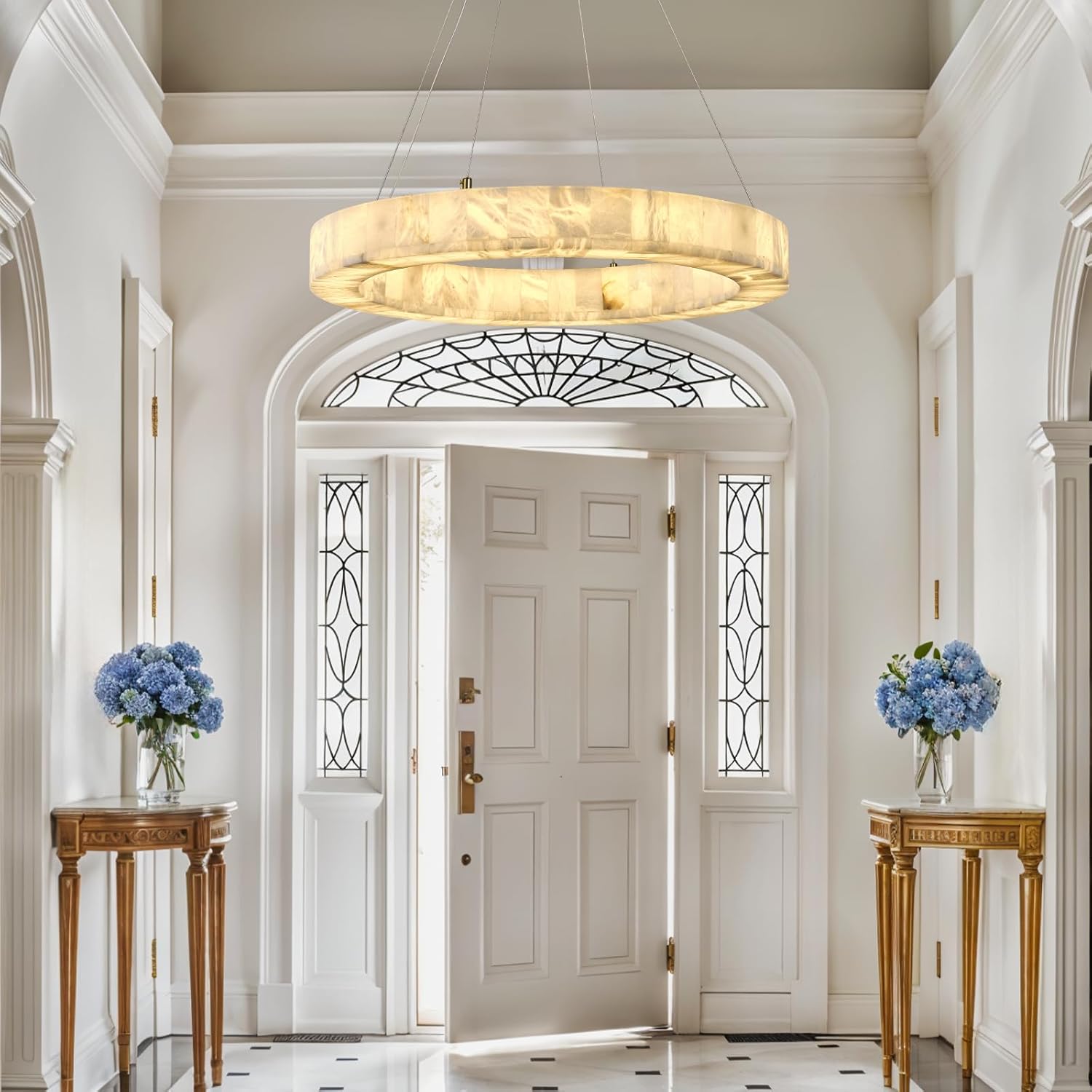 - Wide Application: Alabaster chandelier round is simple and exquisite, perfect match with different styles of home decoration. Whether it is for your living room, kitchen, bedroom, corridor or entrance hall, our living room chandelier will add a touch of elegance to your space.