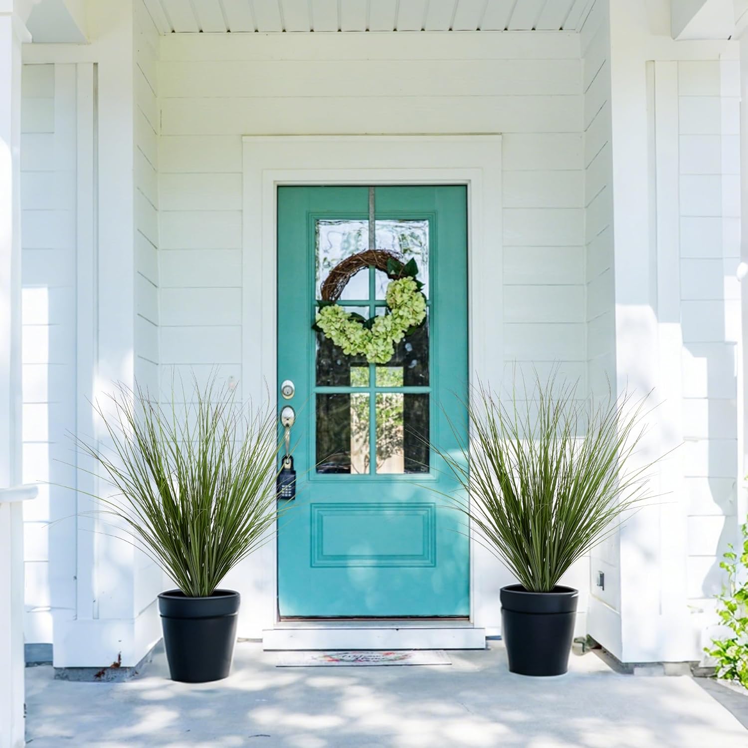 - HIGH-QUALITY: Made from premium plastic plants material, it 4.5 inches in length, 4.5 inches in width and 26.4 inches in height. Our artificial wheat grass is built to last. It can withstand various weather conditions outdoor without fading or losing its shape. The sturdy construction ensures that it remains intact even with frequent handling indoor. Unlike real wheatgrass, it requires no maintenance, saving you time . This makes it a practical and reliable option for long-term Home Decoration