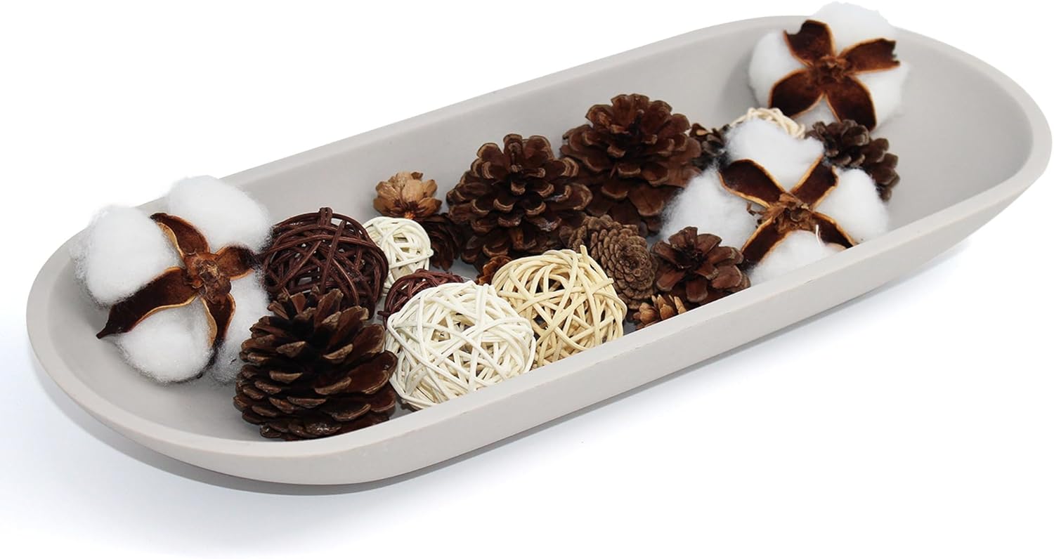 Large Decorative Bowl for Home Decor - Long Dough Bowls with Anti Slip Base for Table Centerpieces - Grey Minimalist Design Dough Decor Bowl for Coffee Table, Dining Table Centerpiece