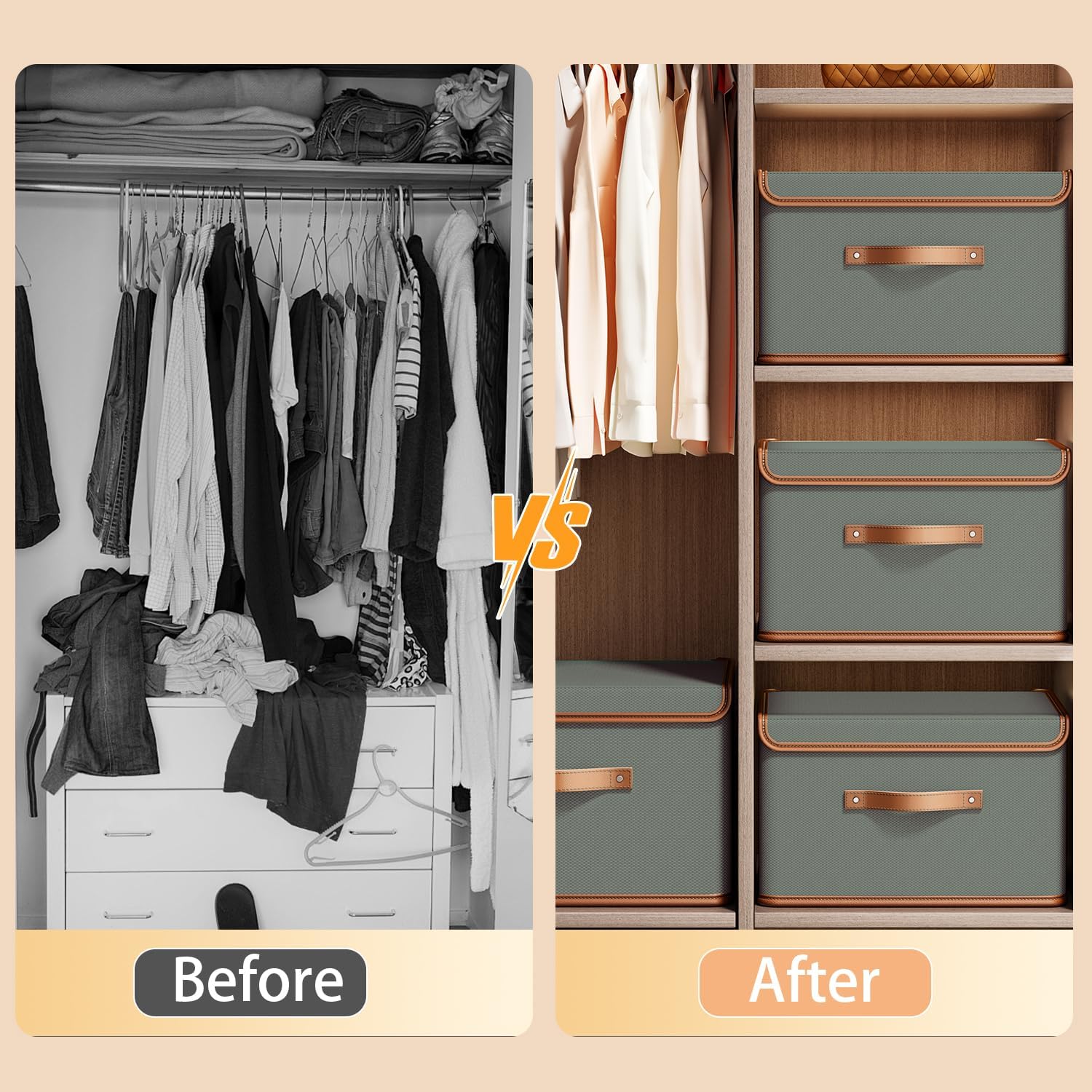 - Large Storage Bins with Lids and Leather Trim: This lid provides added protection for your belongings inside the cube storage organizer, ensuring they stay safe and secure. The leather trim reduces wear, while the convenient handles add to the overall convenience. It's a thoughtful design that extends the usability of the fabric storage boxes with lid
